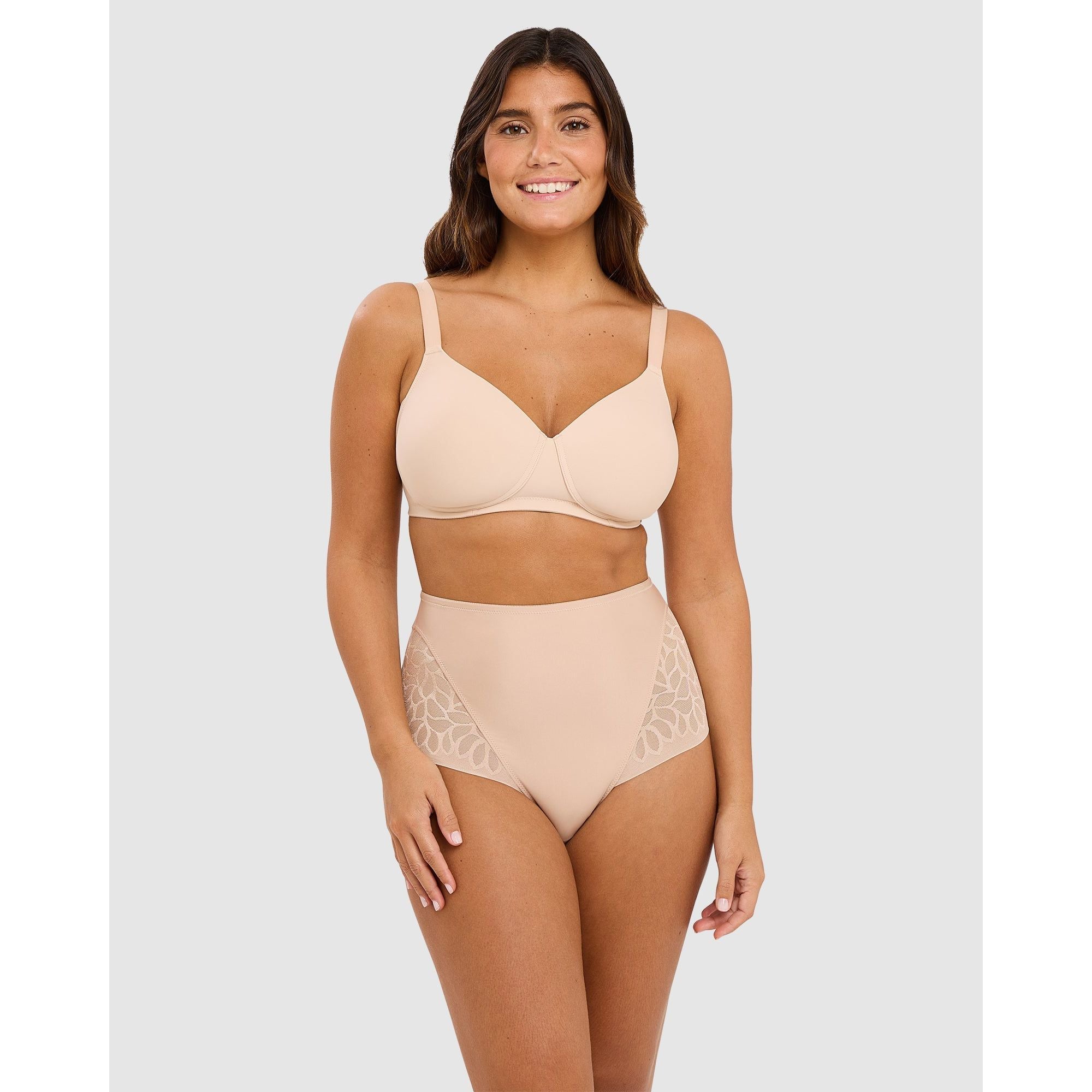 Get a flawless look under your clothing while also enjoying absolute comfort with this wirefree t-shirt bra, which has full coverage cups and reinforced side support panels (made from ultra-soft microfibre) to smooth your underarm area. The multi-position straps can optionally be crossed over.