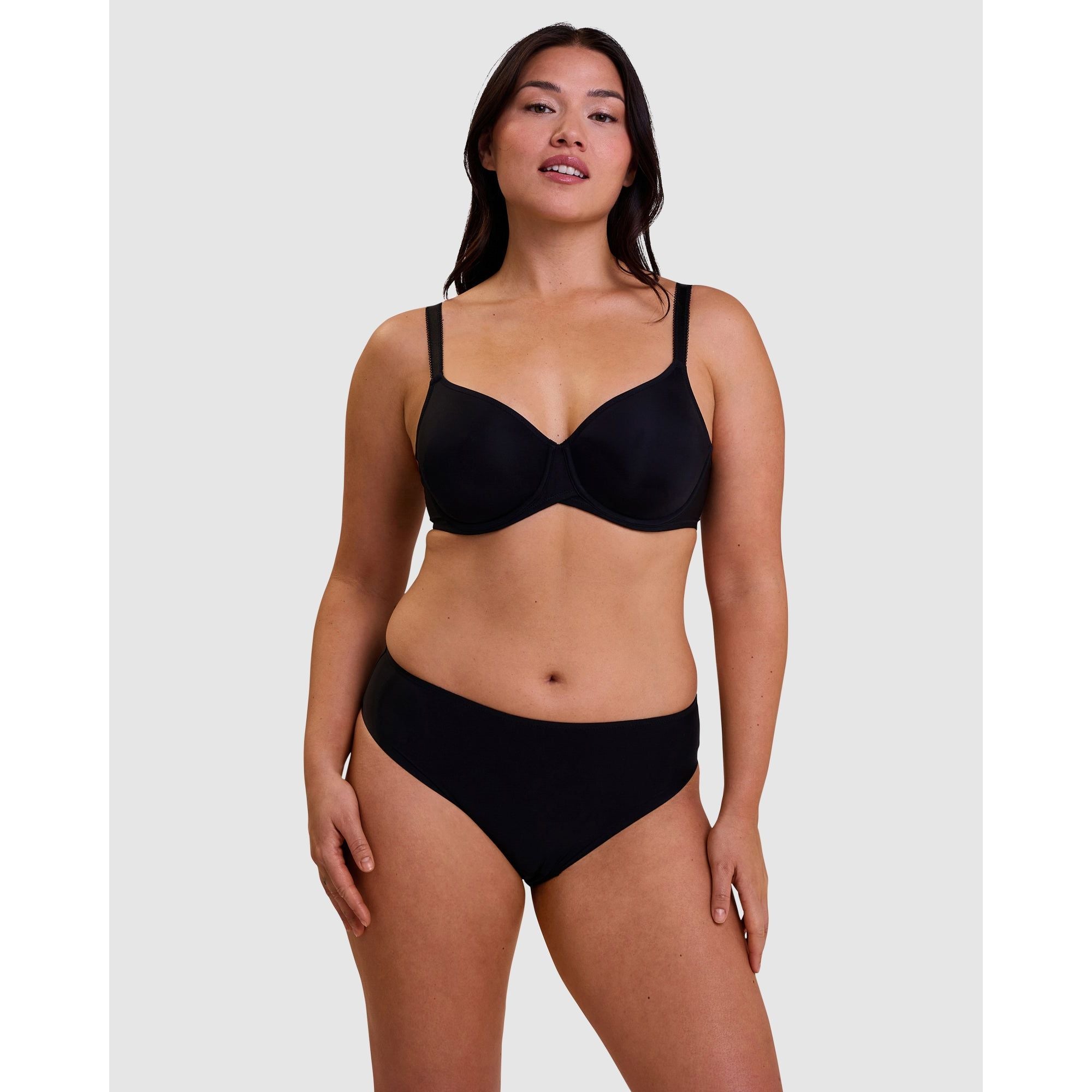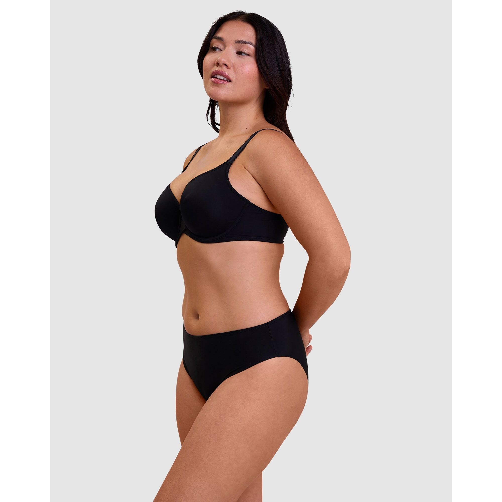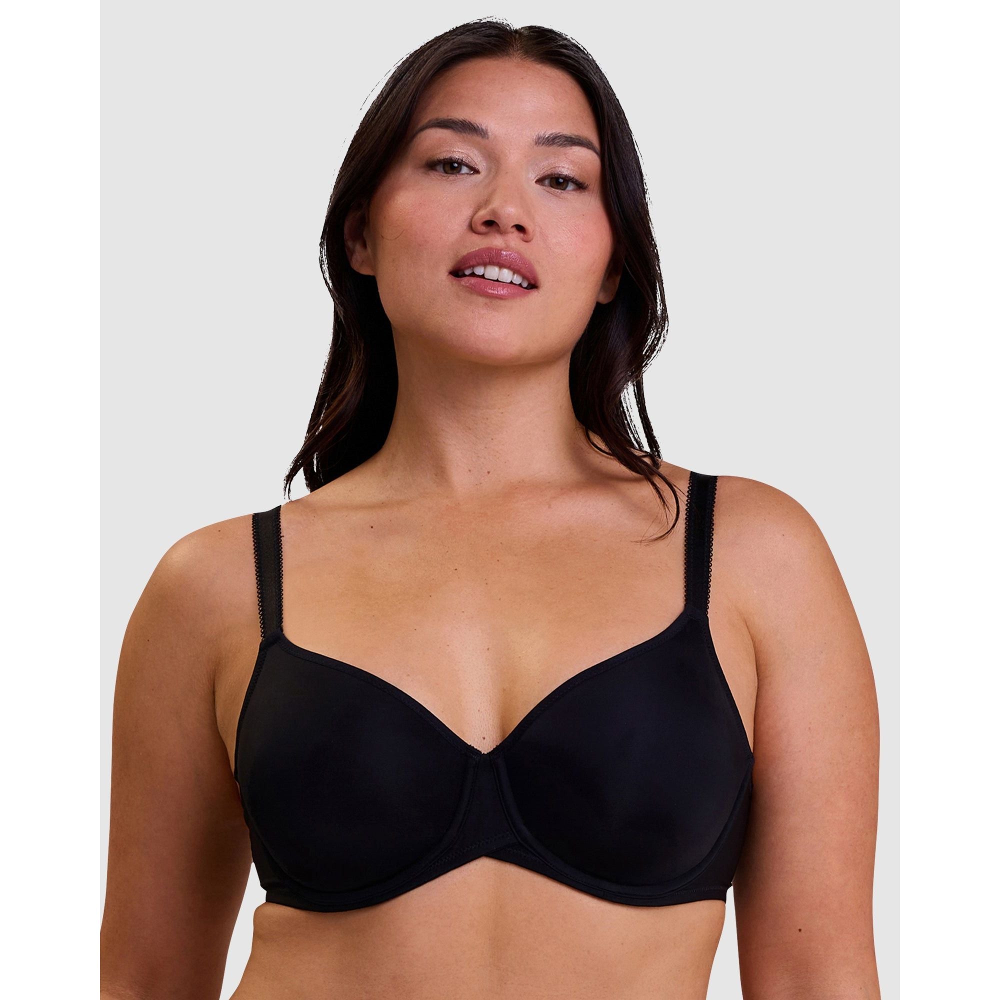 Designed for a minimal yet refined look, and excellent everyday shaping and comfort, this wired t-shirt bra has seamless moulded cups with a tulle lining for enhanced support. Crafted from soft microfibre, it features a chic crossover detail between the cups plus satin-finish straps with picot edging.