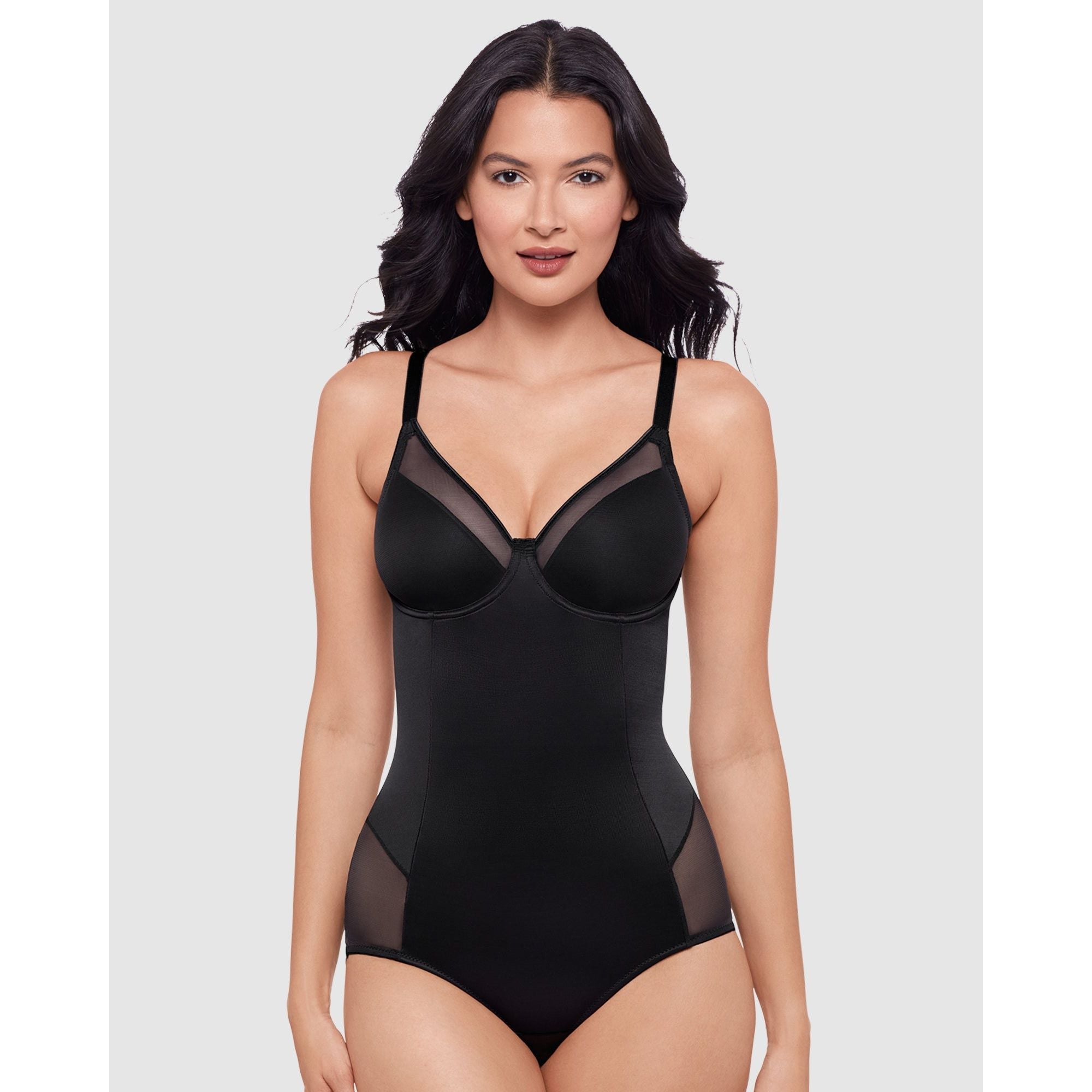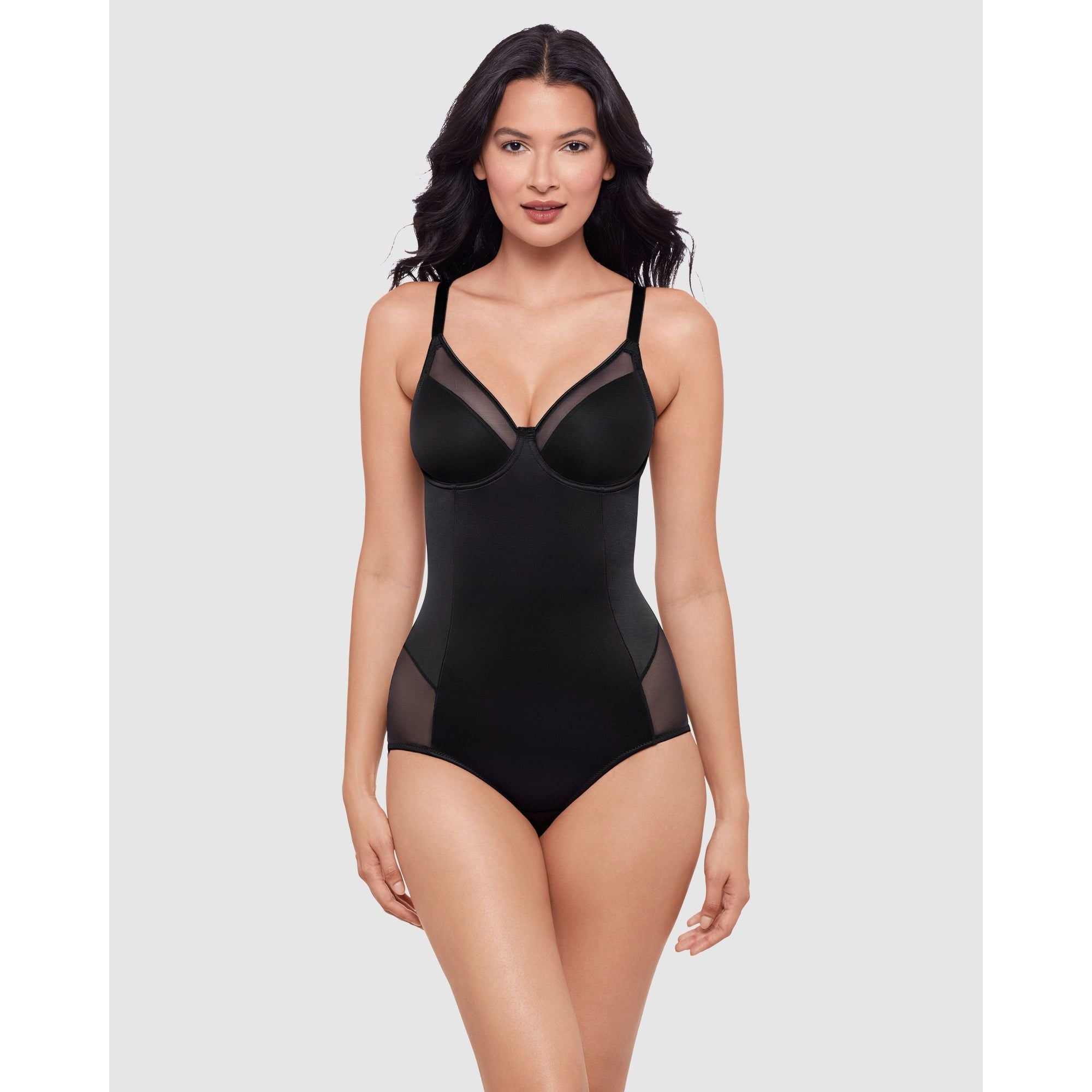 This extra-firm control shapewear bodysuit is the ultimate base piece when you want to look your best: a double-layered tummy support panel flattens your midriff, underwired cups with foam padding lift and shape your bust, and panels of sheer mesh add cooling comfort while also creating a more flexible fit. Other fantastic details on this bodyshaper include adjustable straps that can be crossed over, a convenient hook-and-eye gusset fastening, and Wonderful Edge® silicone at the backs of the leg openings to prevent them from riding up or rolling over.
