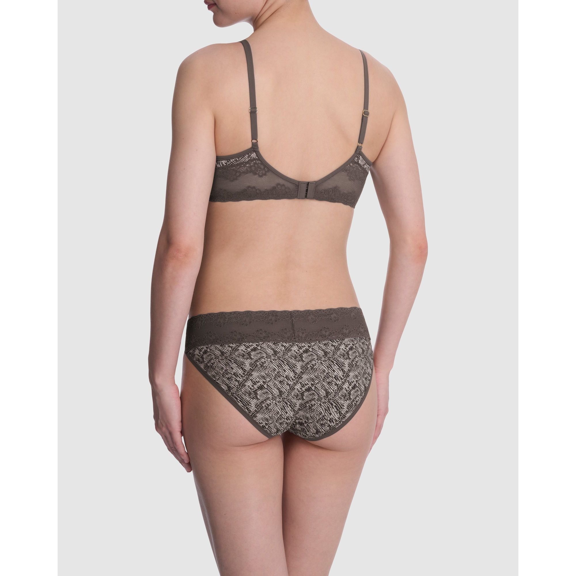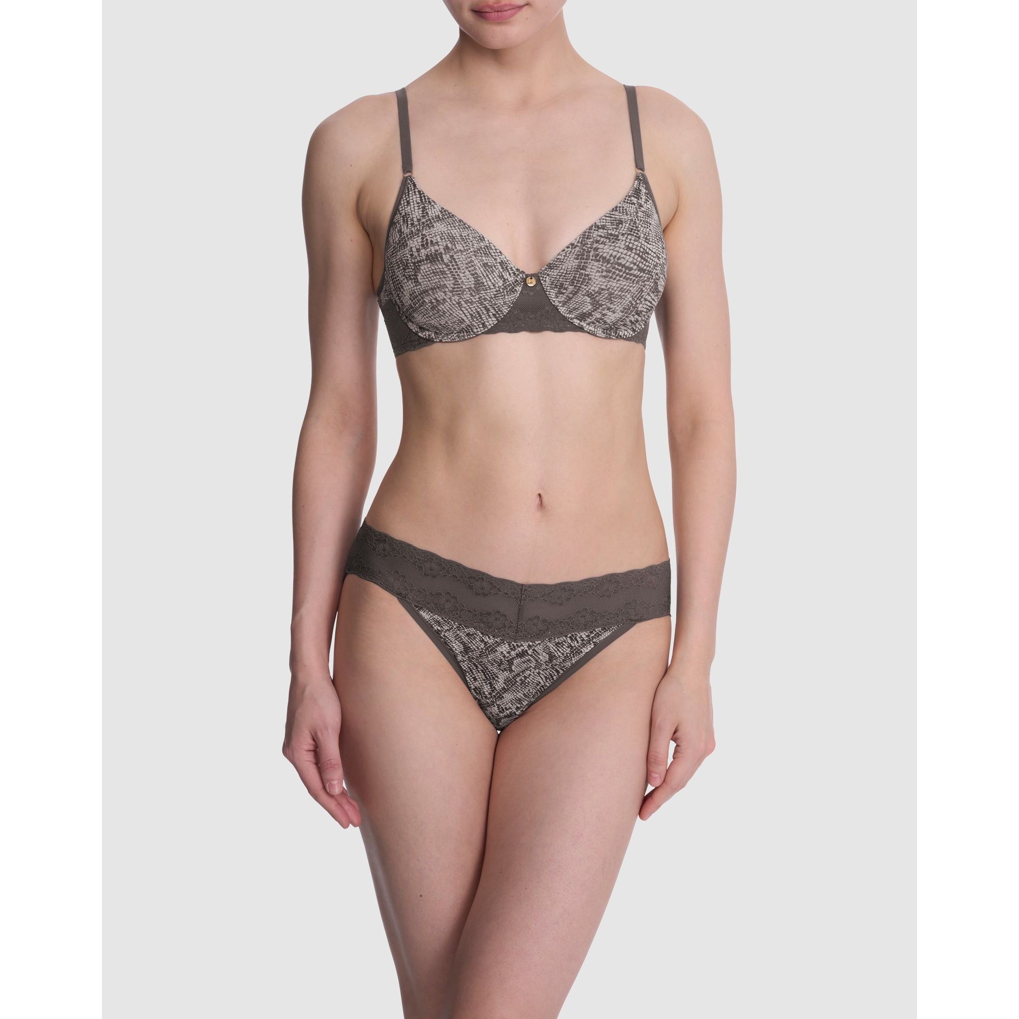 Your ultimate everyday bra: this smooth contour bra is made from a combination of 360-degree stretch jersey and lace fabrics which gently hug your body, and has lightweight, stretchy padding with a brushed liner for an exceptionally soft feel against the skin. Gold-tone strap hardware and a gold Natori charm between the cups elevate the look, for a practical yet pretty bra you'll be wearing non-stop.