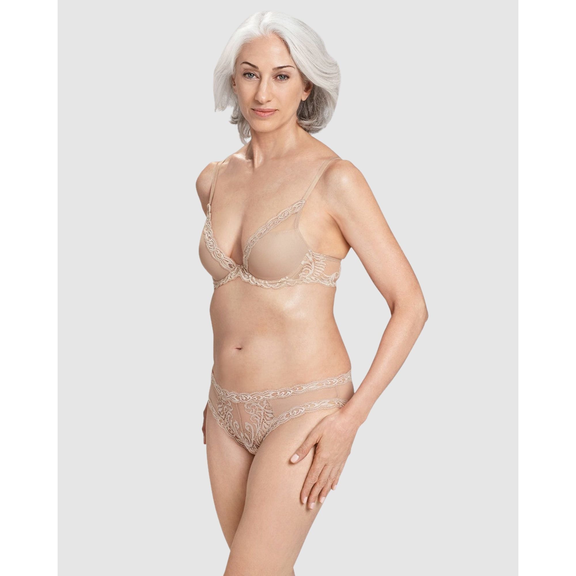 Smooth under clothing and flattering under any neckline, this iconic contour plunge bra has been a firm favourite since its launch in 2009. Lightweight contour cups and moulded mesh gently lift and shape the bust without adding bulk, while Italian lace trims the neckline and adorns the band for a stylish look.