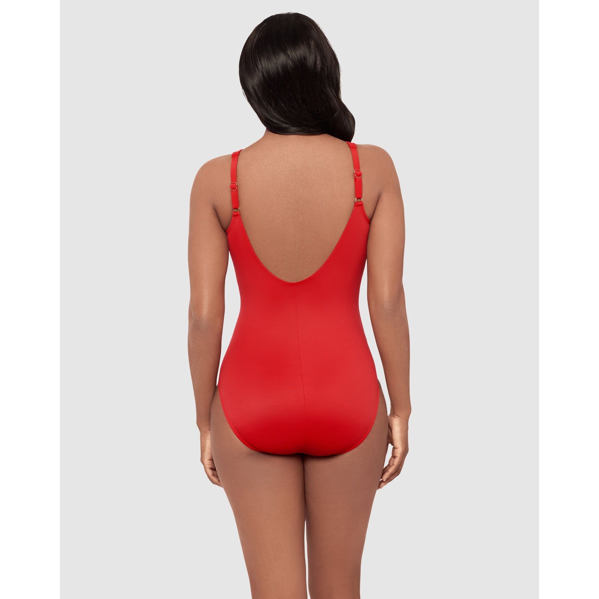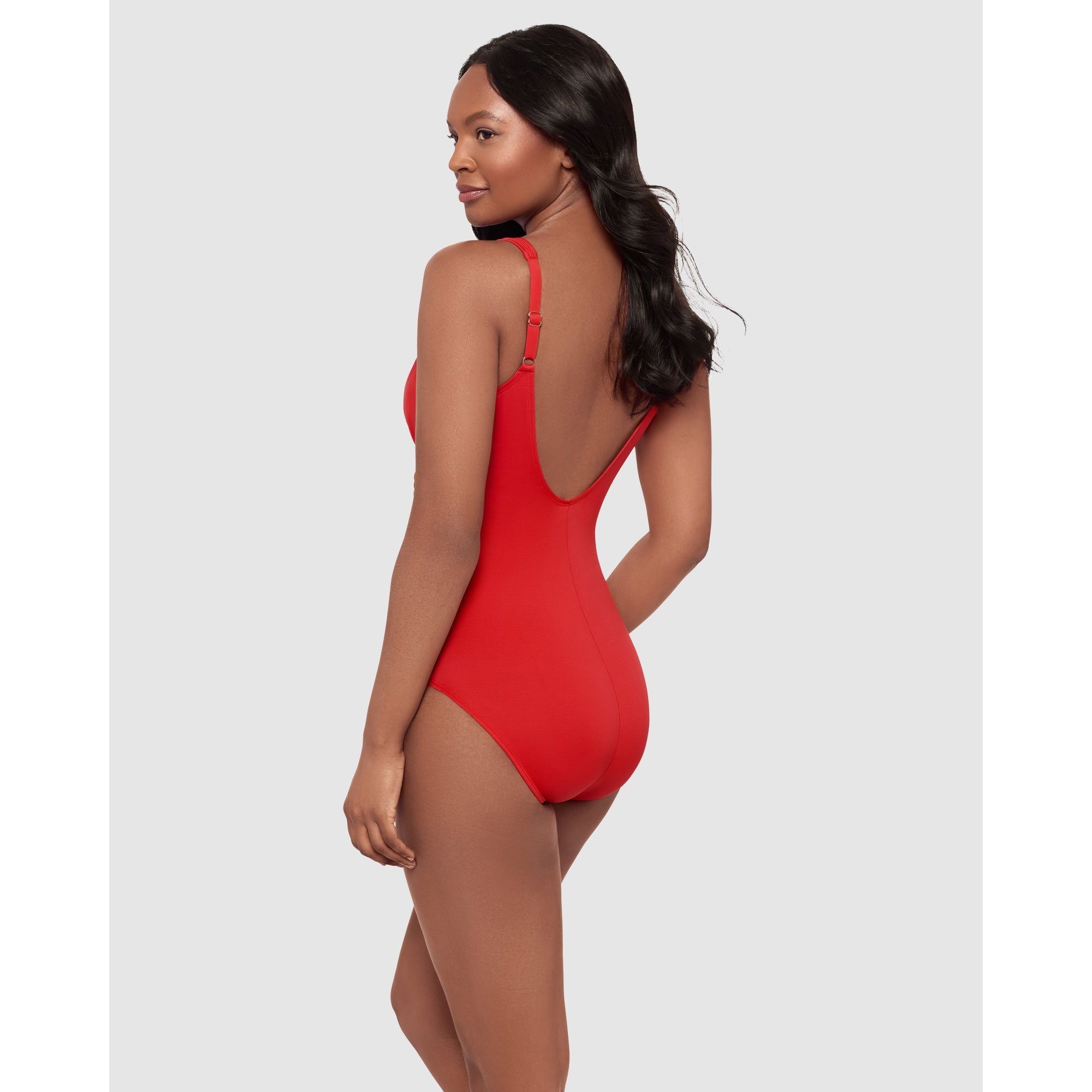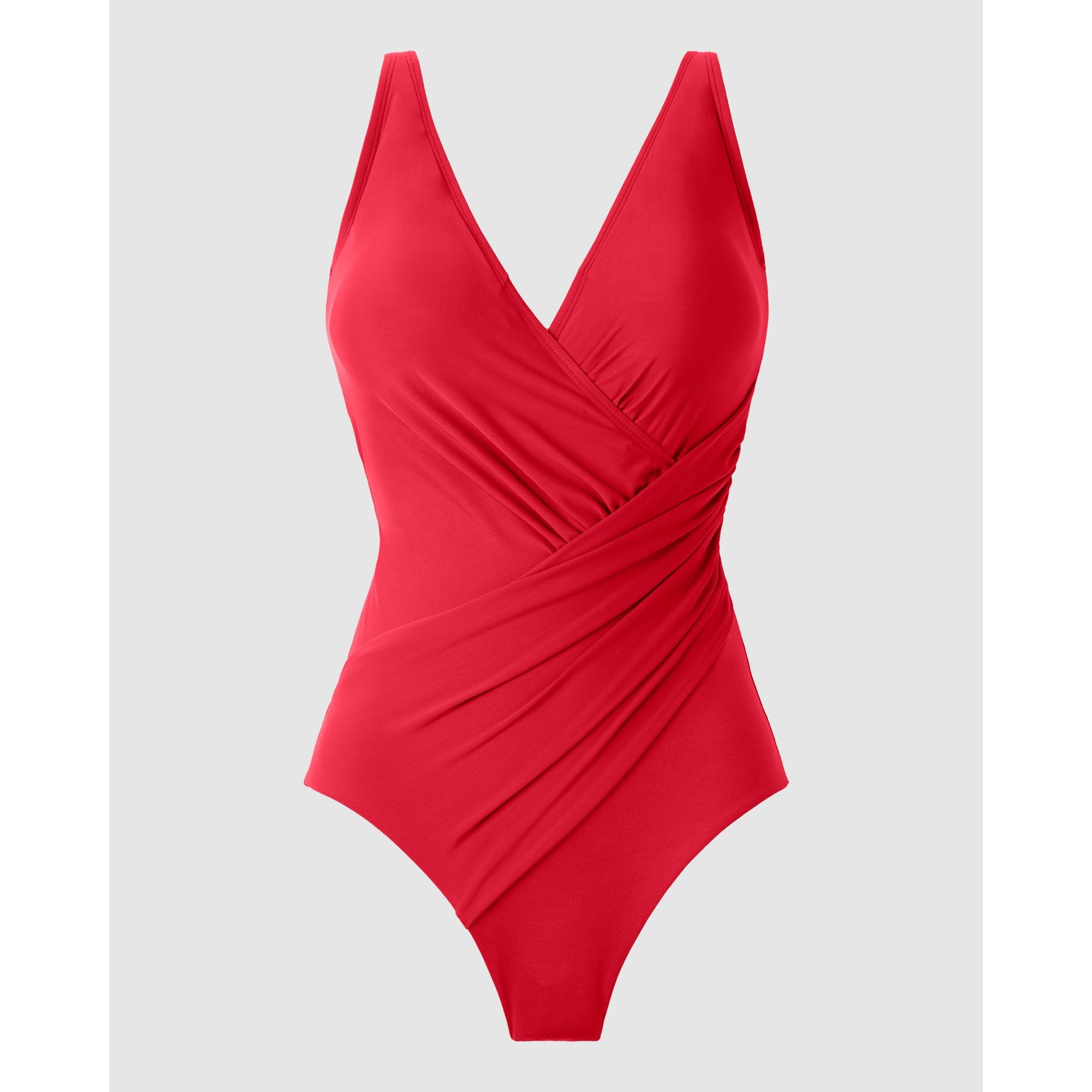 This classic, one-piece swimsuit with a crossover neckline is the perfect way to create a more hourglass-y silhouette. The wrapover front leads to subtle gathering at the side to emphasise your waistline, and this shaping swimsuit provides all-over smoothing and slimming thanks to Miraclesuit's lightweight-yet-powerful Miratex control fabric.