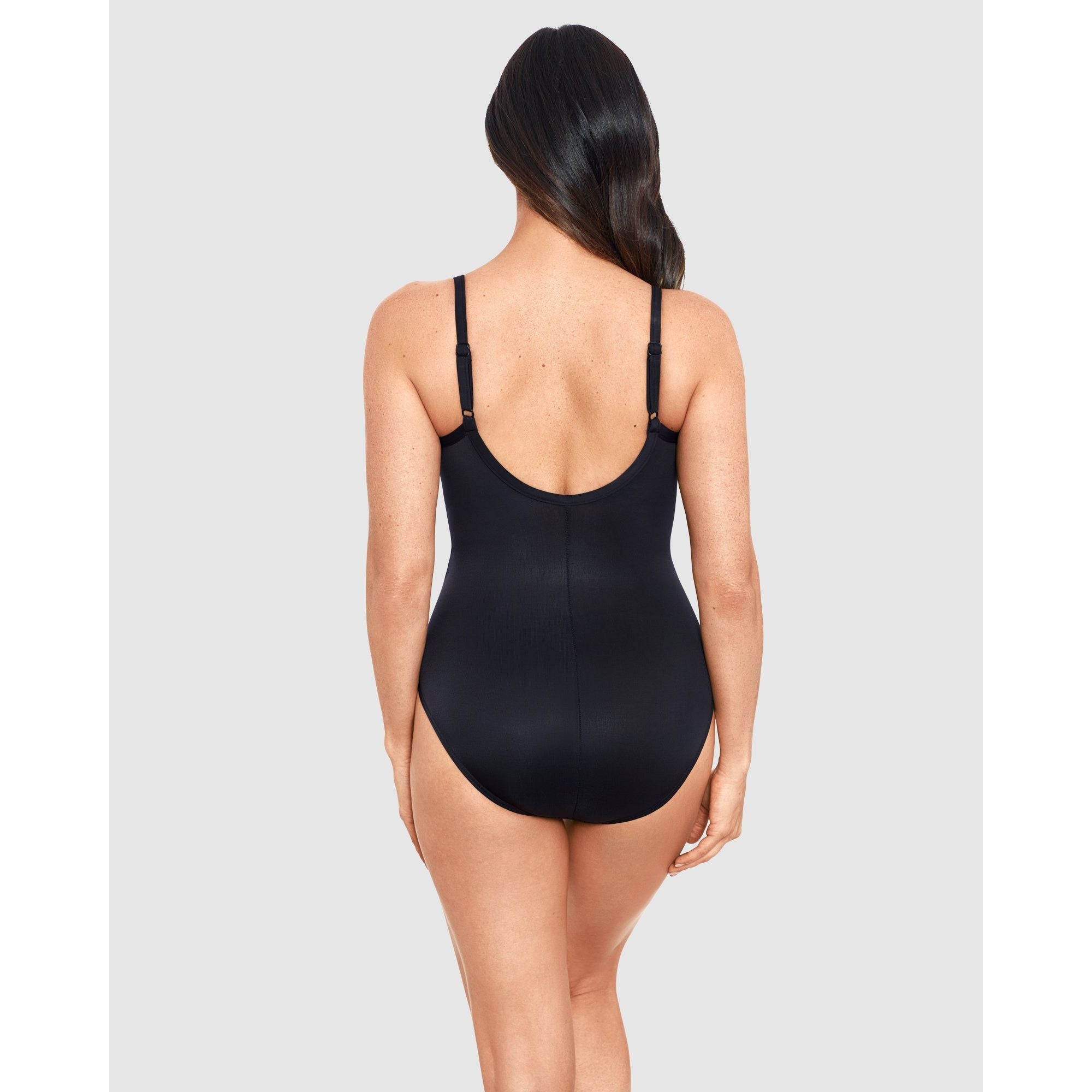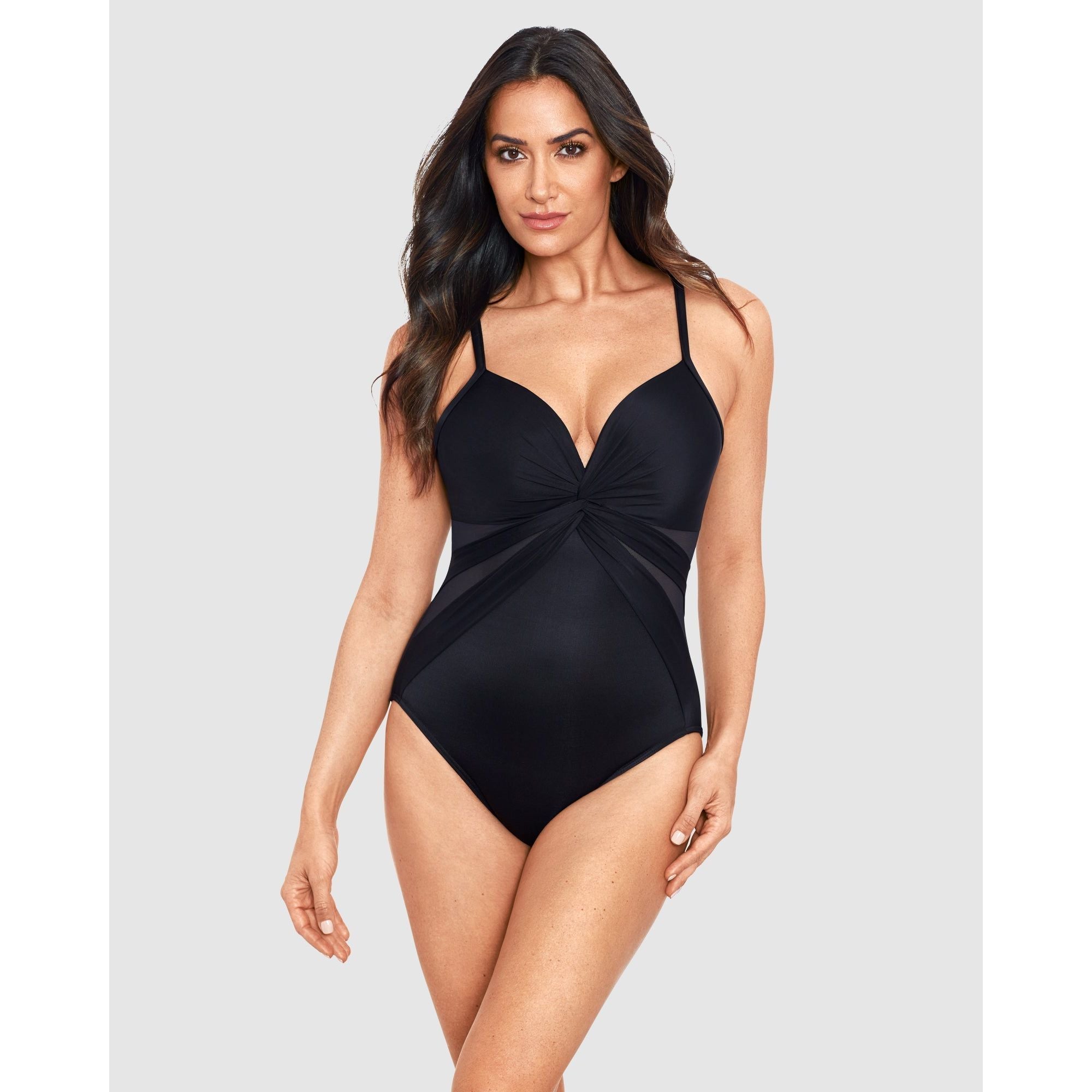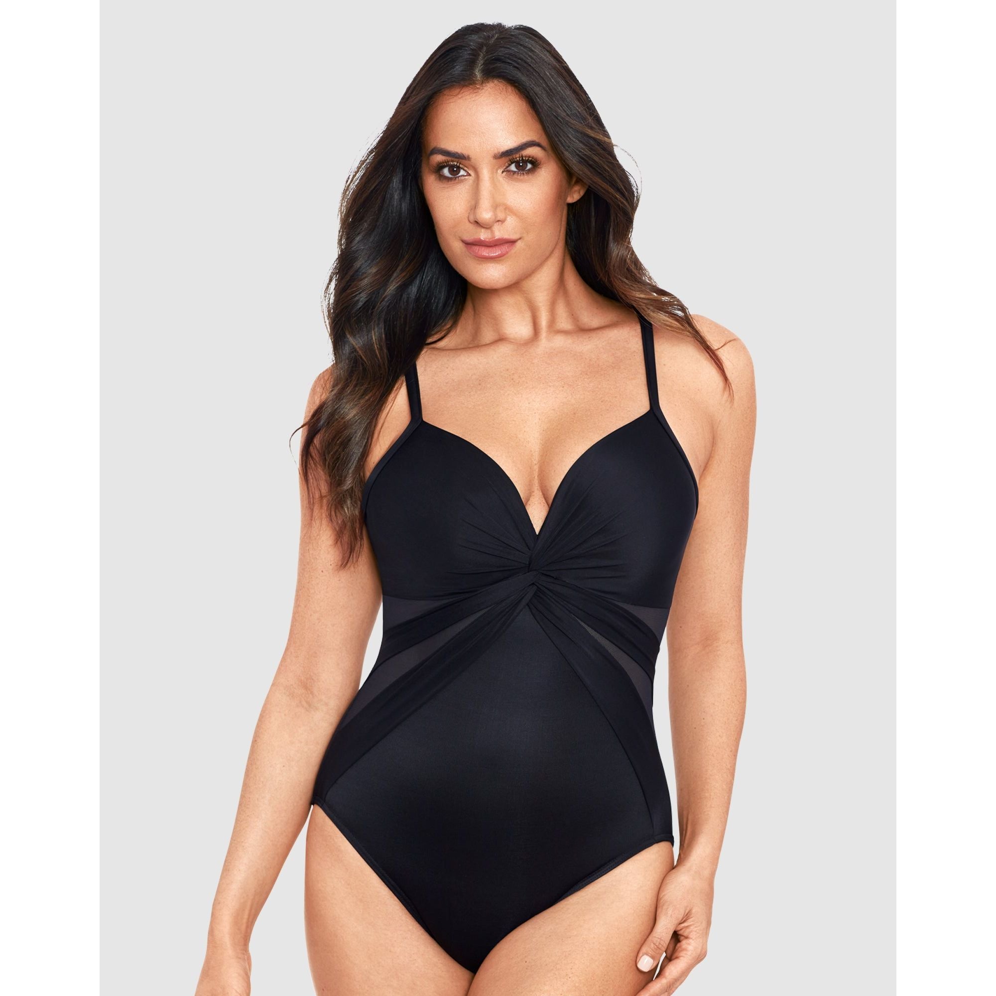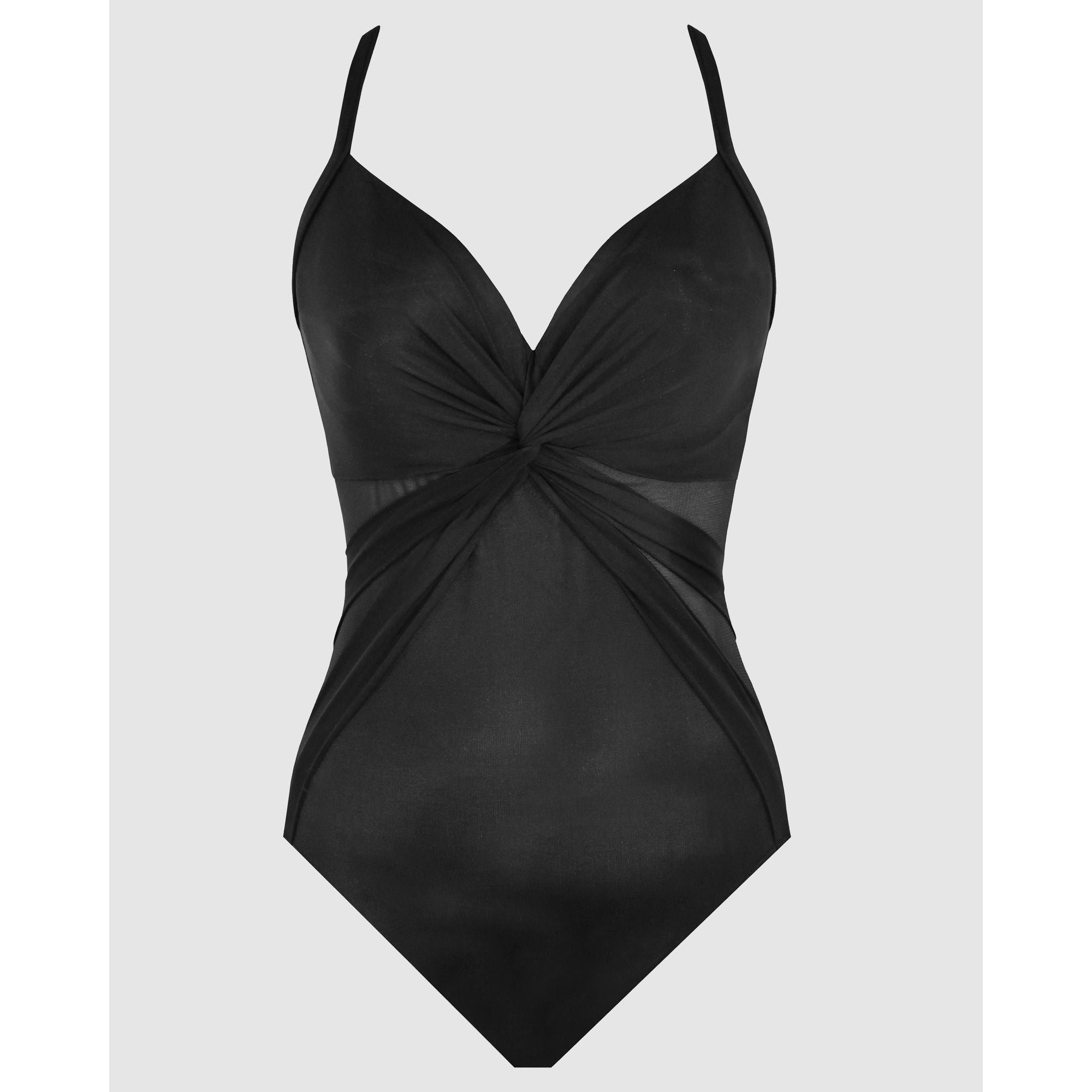 Cut a flawless figure by the sea in this slimming twist-detail swimsuit with mesh panelling, which visually narrows your waistline while the firm-control Miratex? fabric smooths and flattens. It's an underwired swimsuit with foam cups and a V shape neckline, and has bra-style adjustable straps so that you can be sure of a perfect fit.