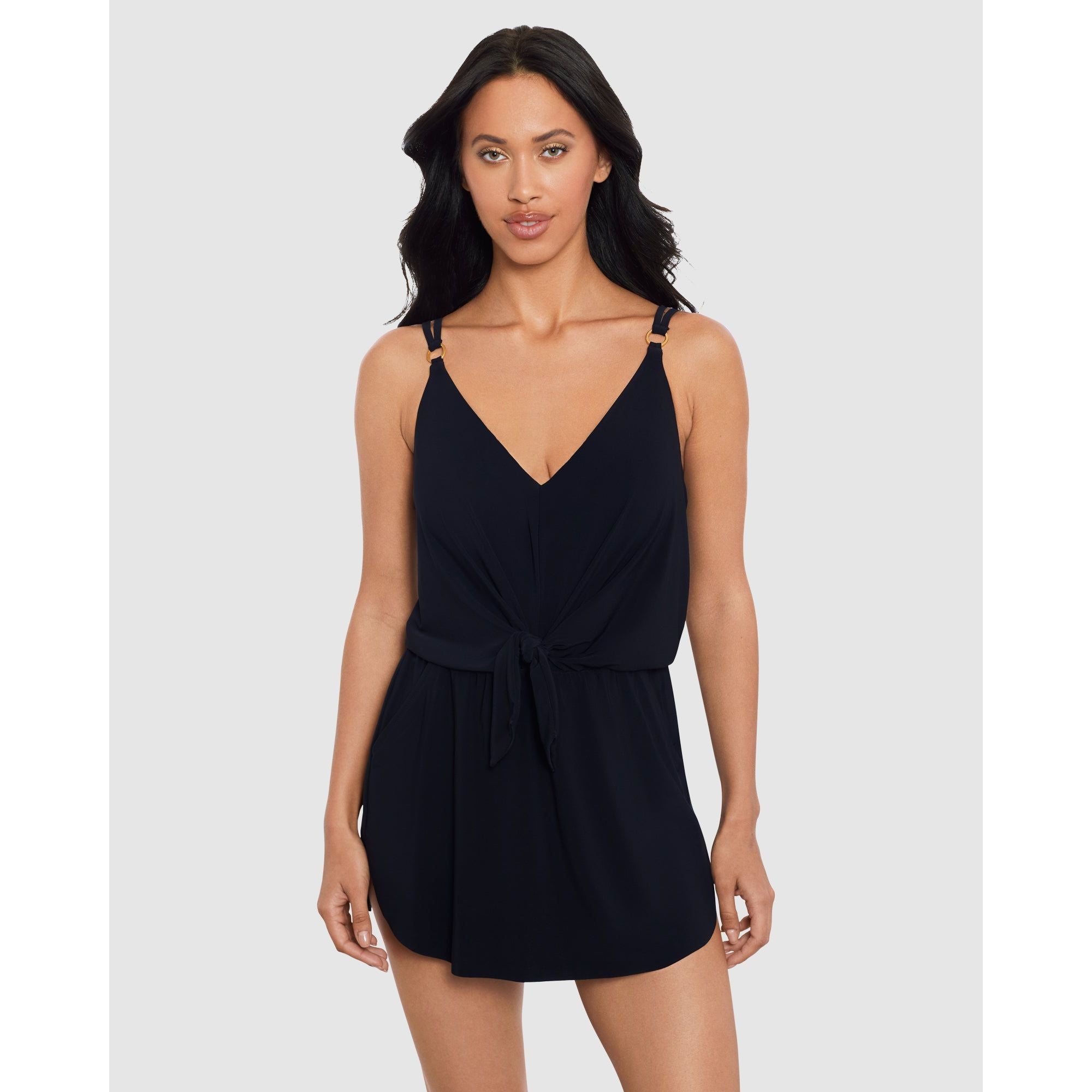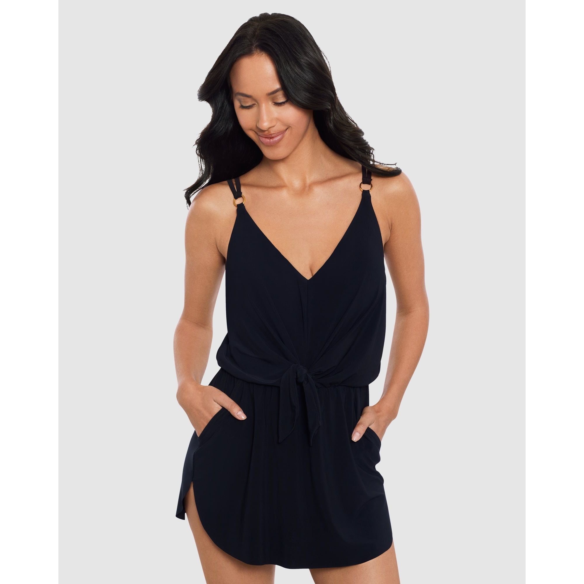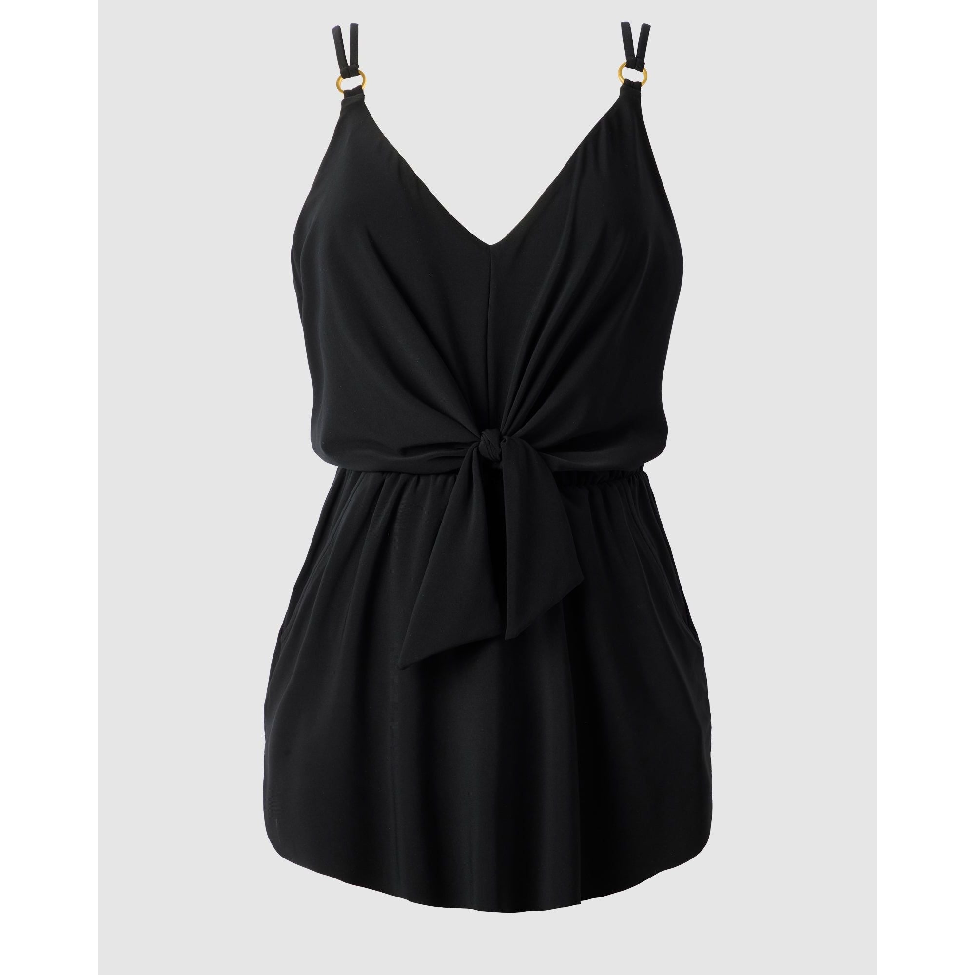 Looking for a women's swimsuit with pockets that provides a little extra coverage and some confidence-boosting shaping? You'll love this short swim dress with its relaxed, loose fit (including a draped knot front) combined with a slimming tummy control swimsuit hidden away below - and yes, it has pockets!