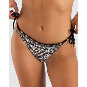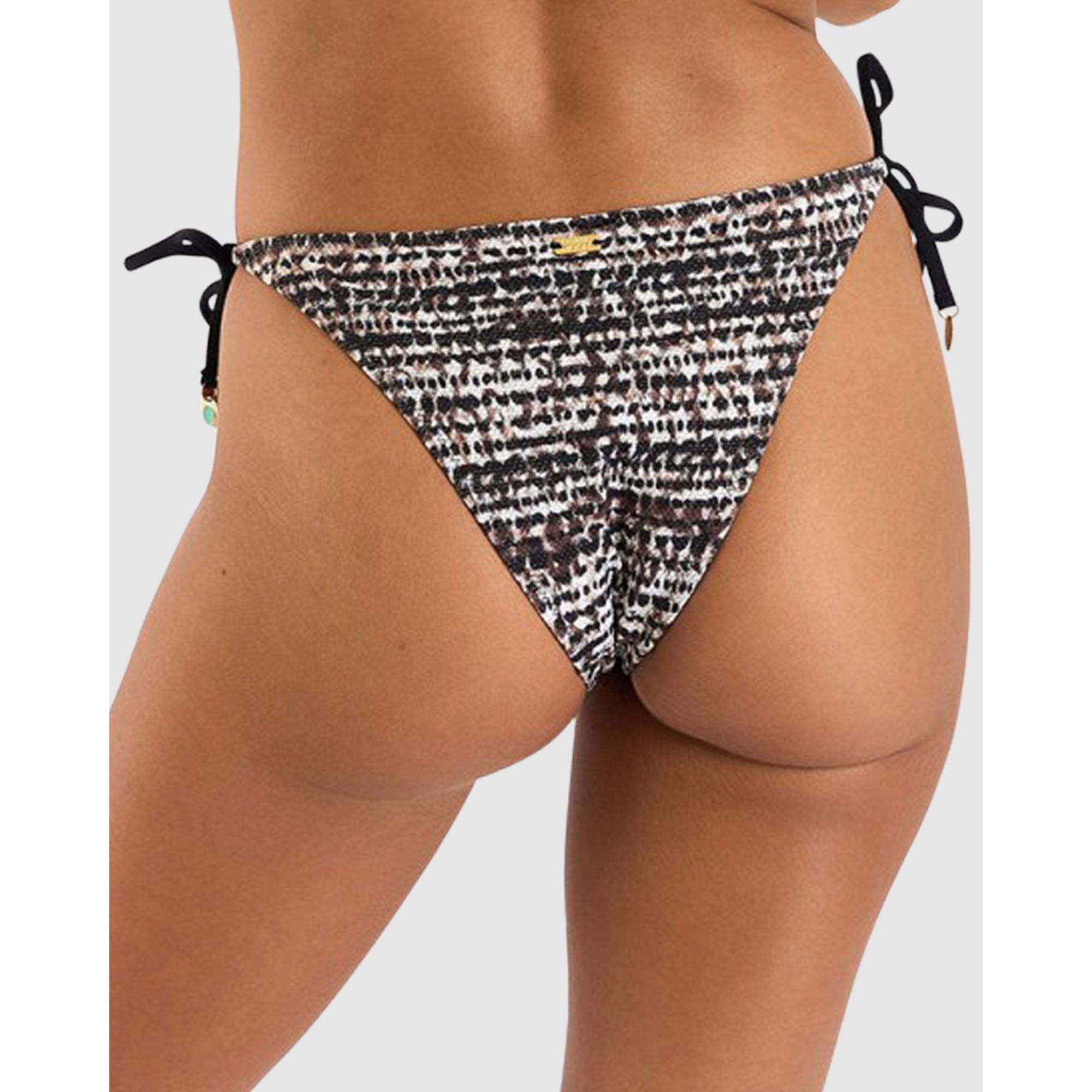 Seductively wild, this high cut bikini bottom from the Banana Moon Couture collection is crafted from printed fabric (made with recycled polyester) with embroidery at the waistline, and fastens at the sides with ties that are each adorned with a golden charm detail. The high leg, cheeky cut back is beautifully flattering on every figure, and is subtly decorated with a metal logo.
