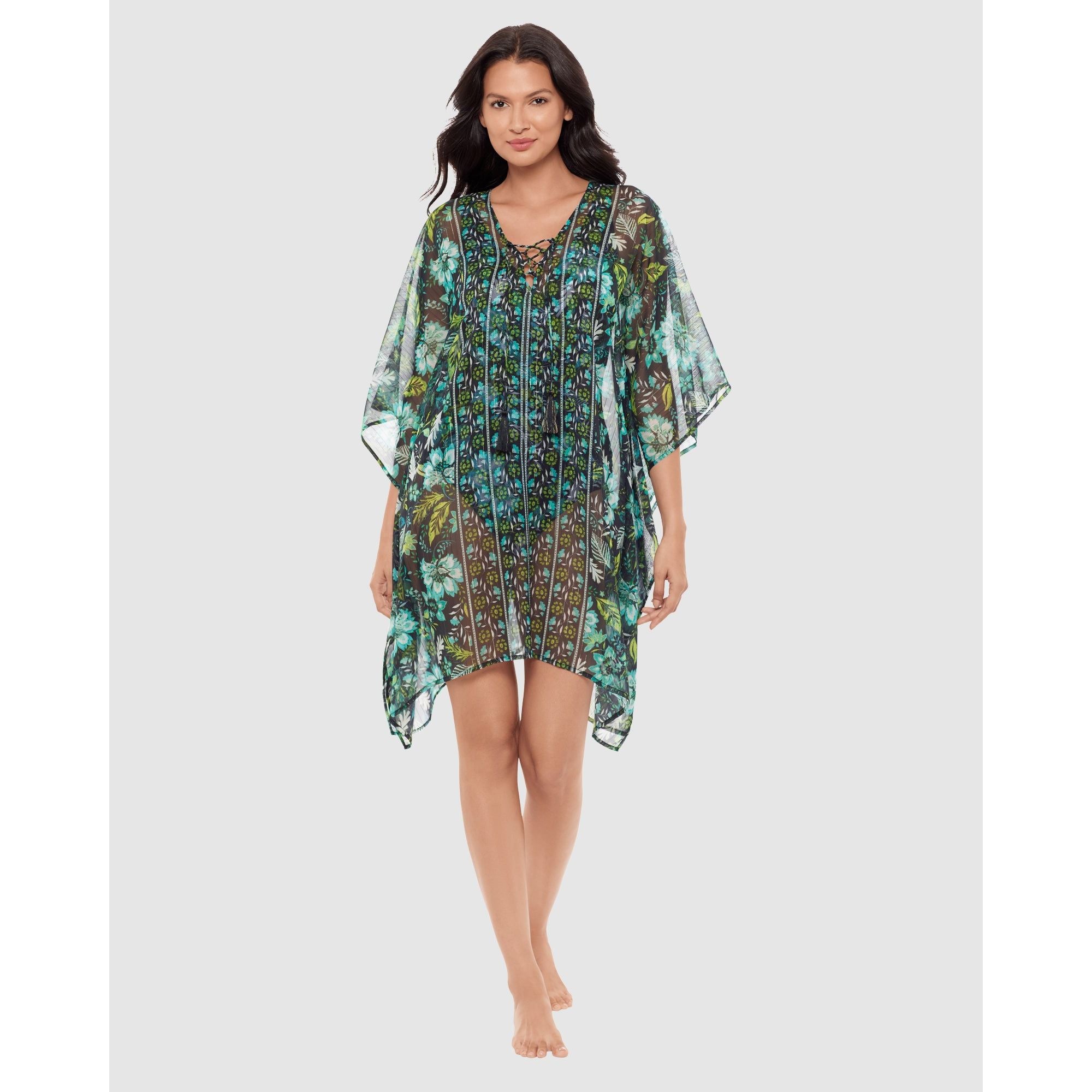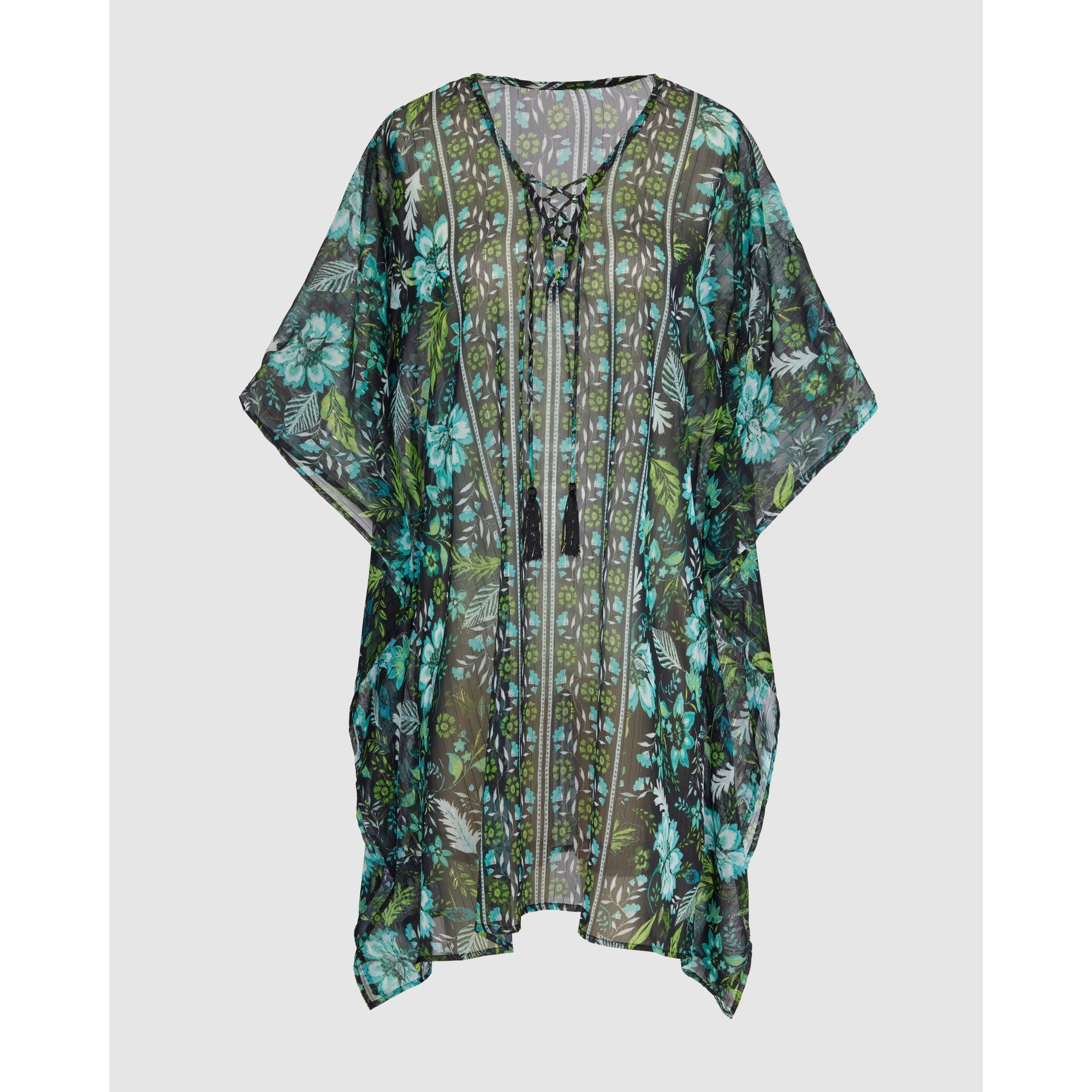 A waterside essential that adds instant glamour to any beach day, boat trip or pool party, this transparent caftan comes in an easy 'one size' fit that drapes beautifully on every figure. The lightweight fabric (featuring a tropical floral print) adds just the right amount of coverage while keeping you cool and taking up minimal space in your suitcase.