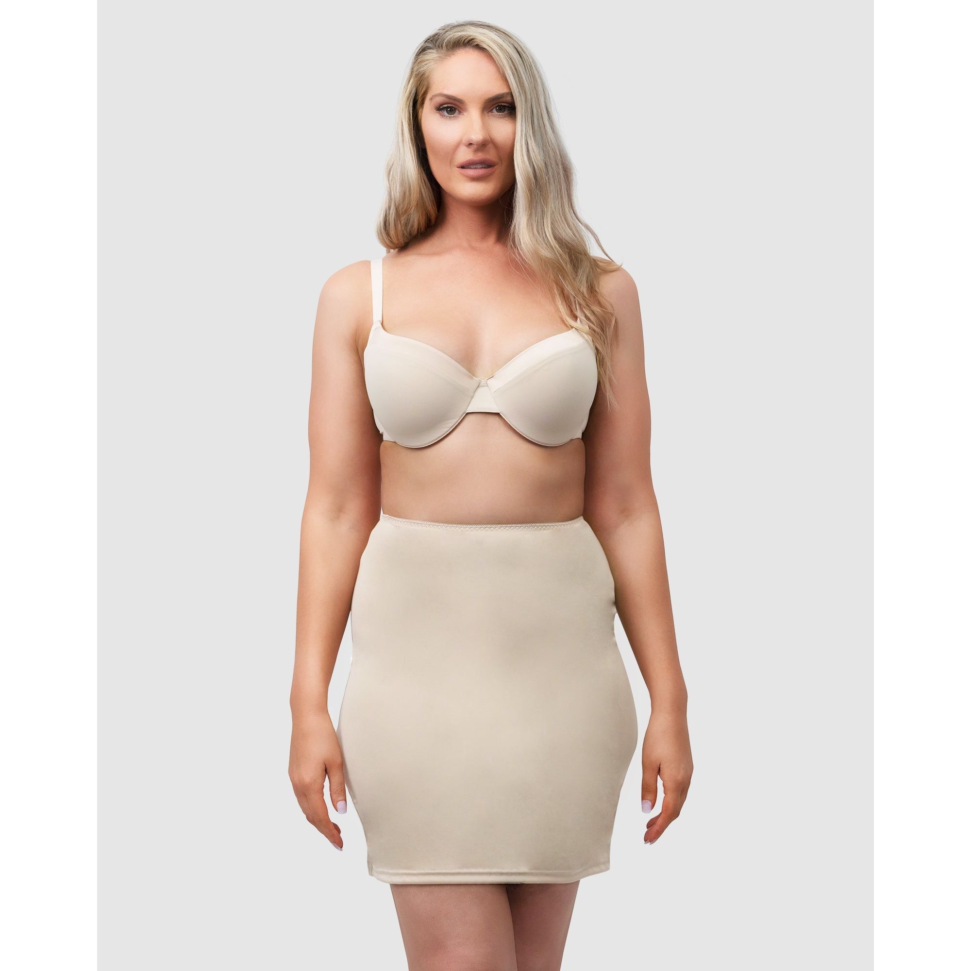 Whether it's to add opacity or achieve a smoother fit in your skirts and dresses, this underskirt is a year-round lingerie essential. At 50cm long, the lightweight slip skirt sits above the knee so can be worn under a wide range of hemline lengths, and has a straight cut that won't add any bulk below fitted outfits.