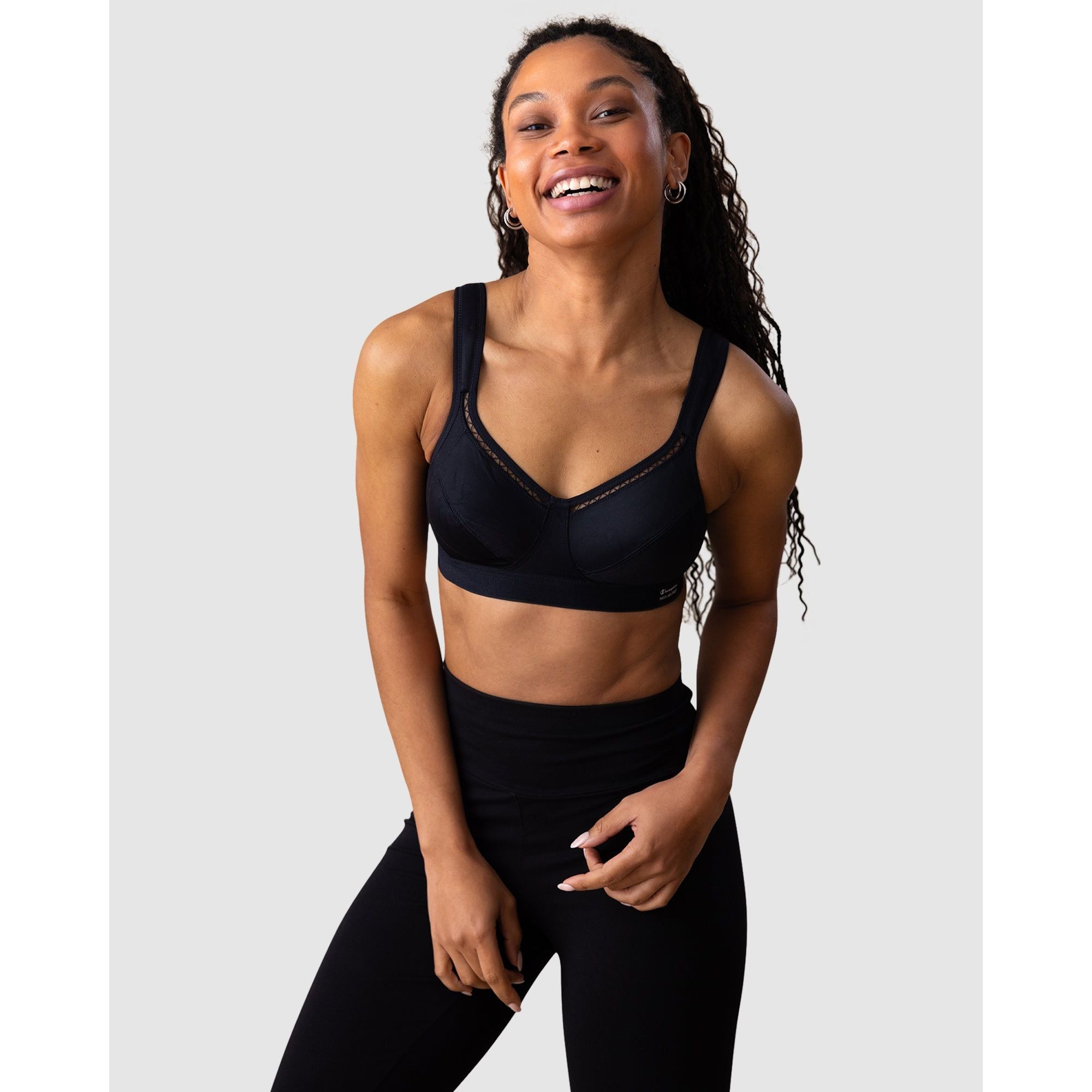 Look and feel fantastic while you're working out in this bra style sports bra, which has separated, rounded cups and a chic cut-out trim along the neckline. Design features that make this an exceptionally breathable sports bra include moisture-wicking performance fabrics and mesh-panelled wings, while the soft underband and padded shoulder straps ensure total comfort for any low or medium-impact sport.