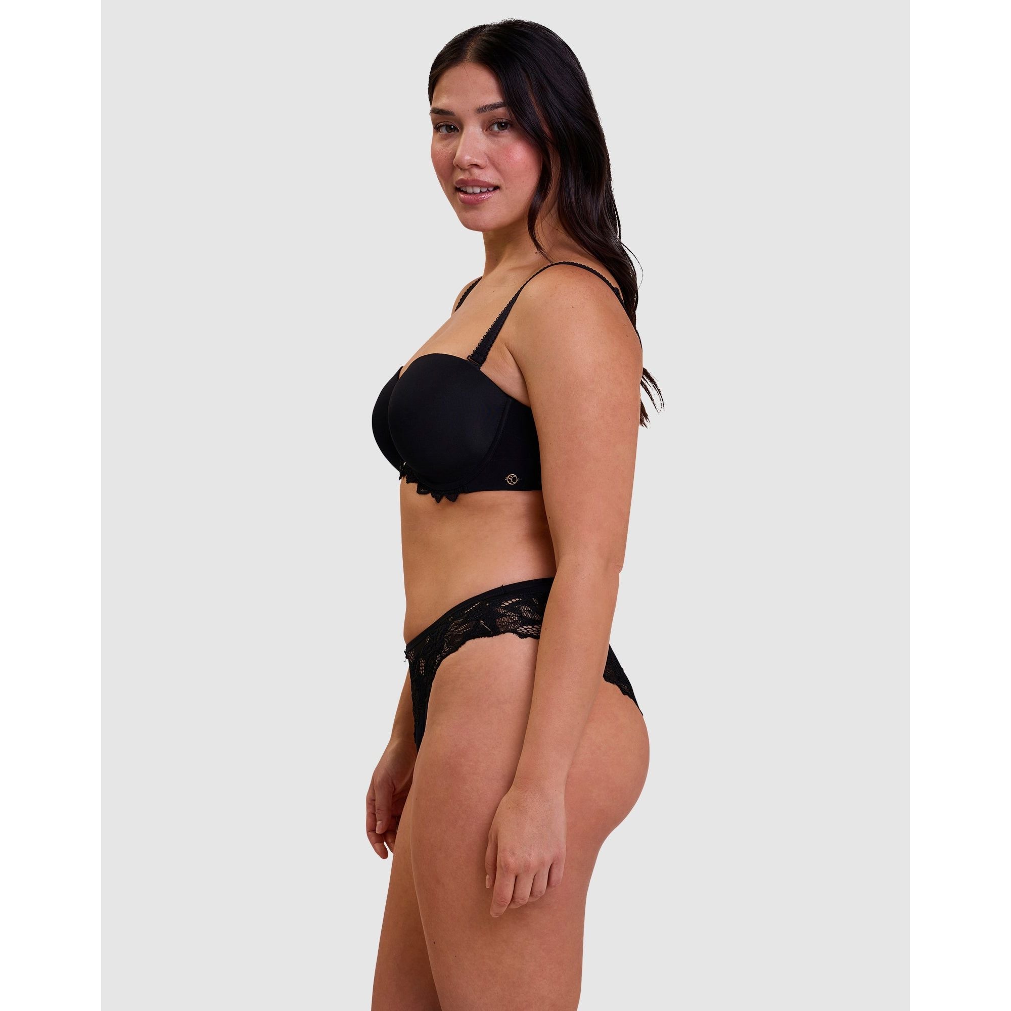 A versatile, flattering bra that gives a great shape under any outfit, this multiway bra has detachable straps and moulded foam cups that create a lifted, rounded shape however you choose to wear it. Satin-finish microfibre, lace trim, ribbon detail and golden jewellery elements elevate the look, for an everyday essential that's luxurious too.
