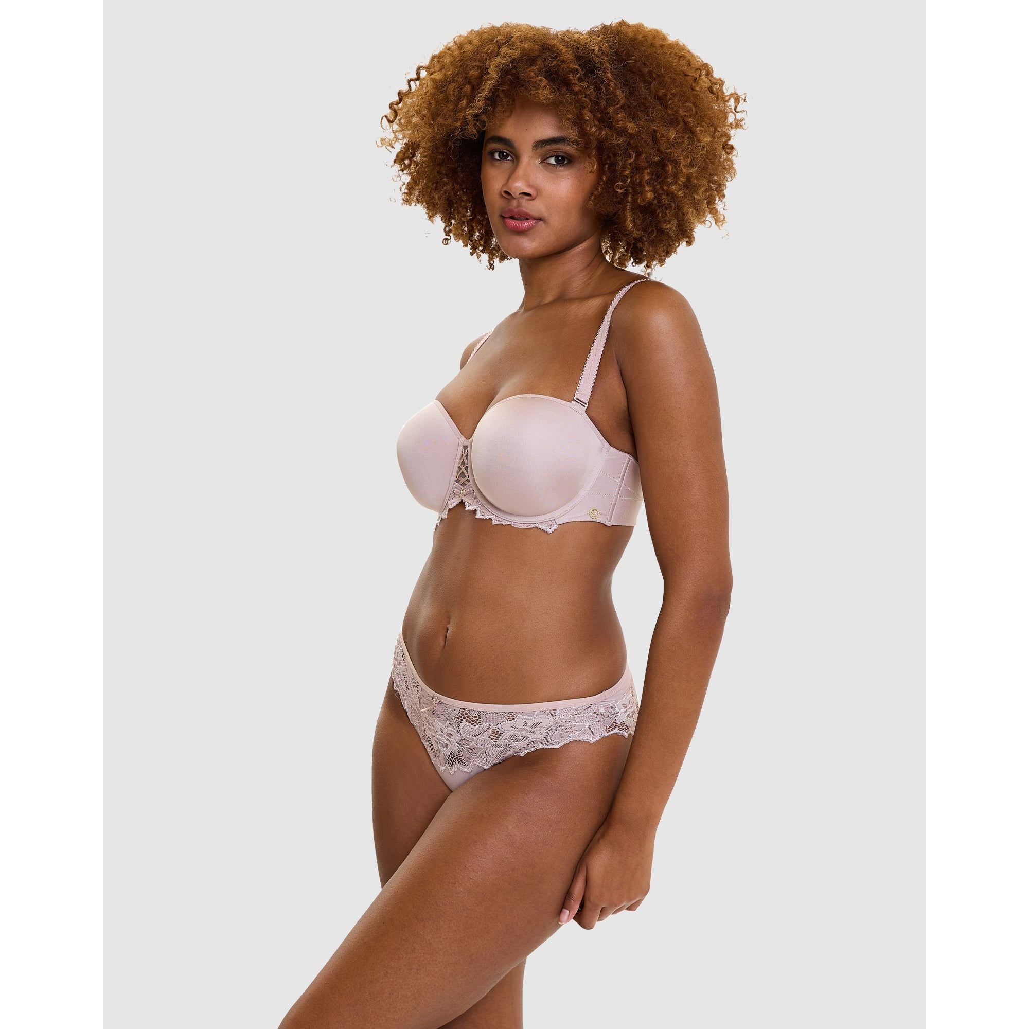 A versatile, flattering bra that gives a great shape under any outfit, this multiway bra has detachable straps and moulded foam cups that create a lifted, rounded shape however you choose to wear it. Satin-finish microfibre, lace trim, ribbon detail and golden jewellery elements elevate the look, for an everyday essential that's luxurious too.