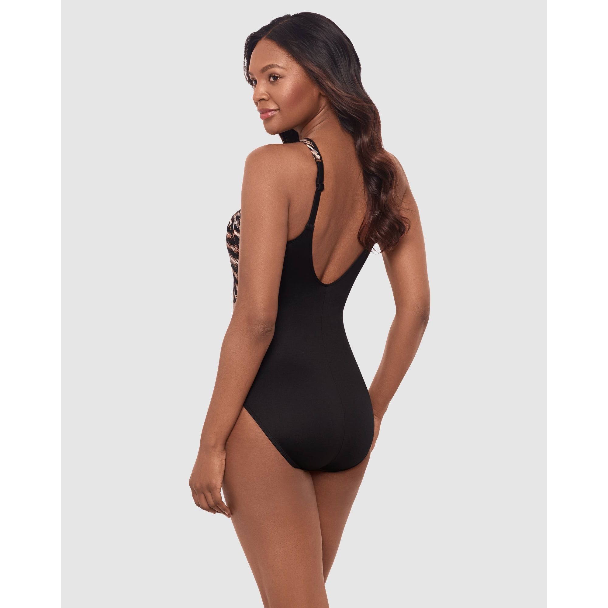Flatter your tummy and waist in this elegant one-piece swimsuit. Designed by one of the world's leading shapewear brands, it's made from slimming and smoothing Miratex fabric. The eye-catching high neck design resembles a halter, but has standard straps at the back so that no weight is getting put on your neck. Tummy-flattering ruching completes the look, for a bathing suit you'll feel truly beautiful in.