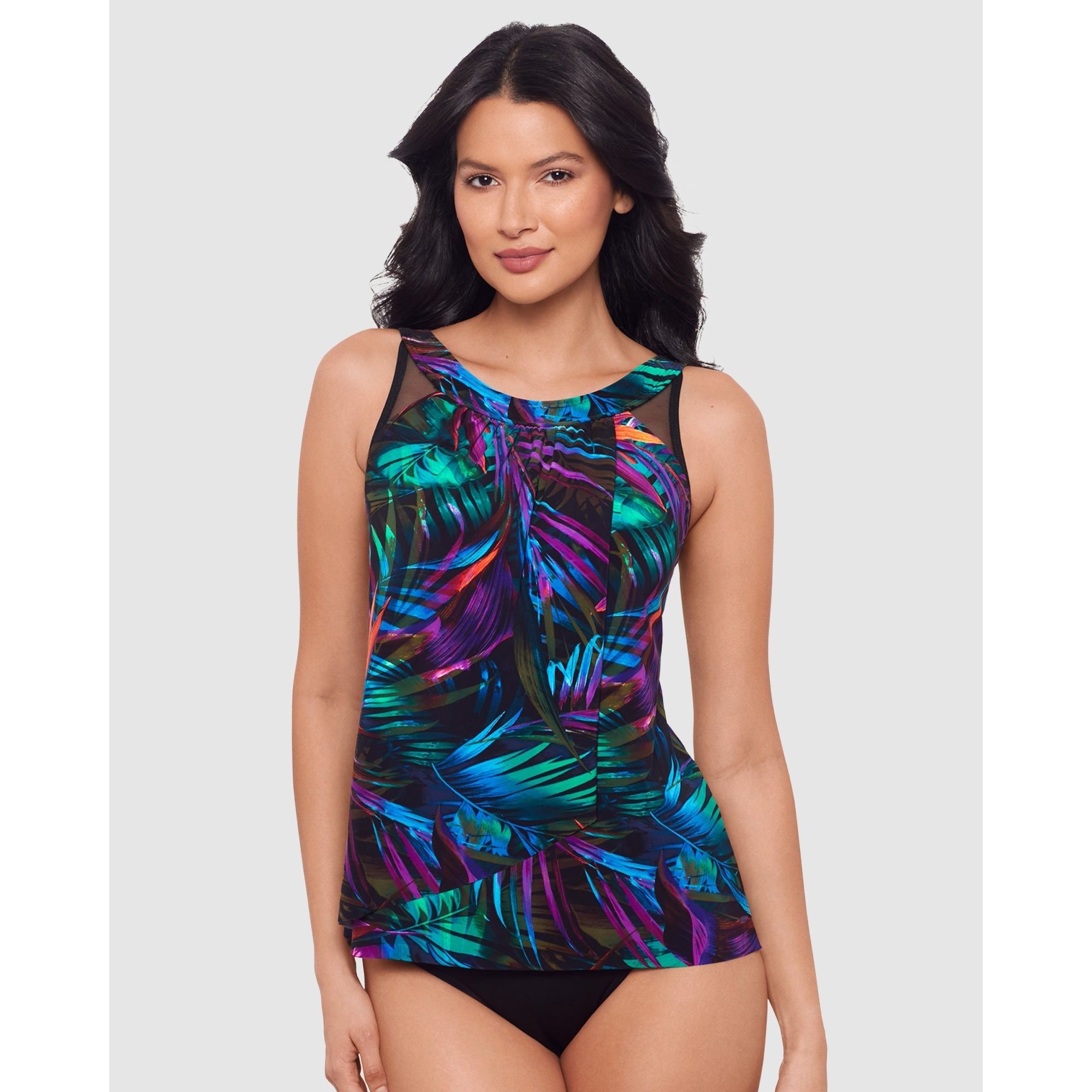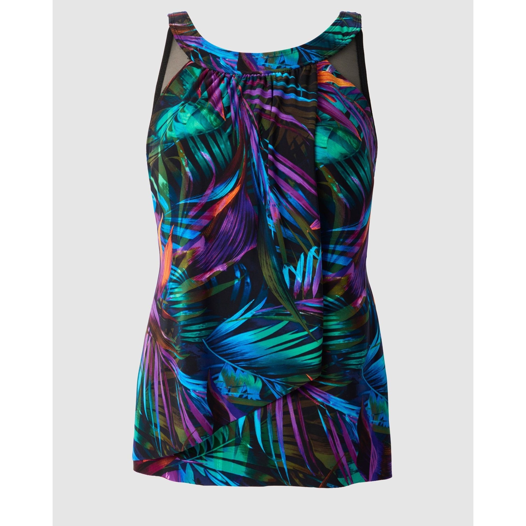 Forget about your tummy woes and simply enjoy your time at the beach in this loose fit tankini top, which completely disguises your midriff thanks to its draped and layered design. A high neckline helps to shield your skin from the sun, and hidden inside is an underwired bra to support and flatter your bust.