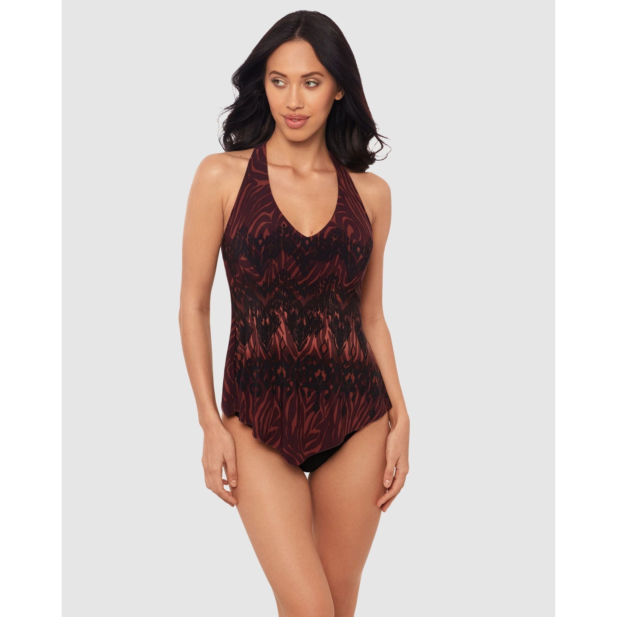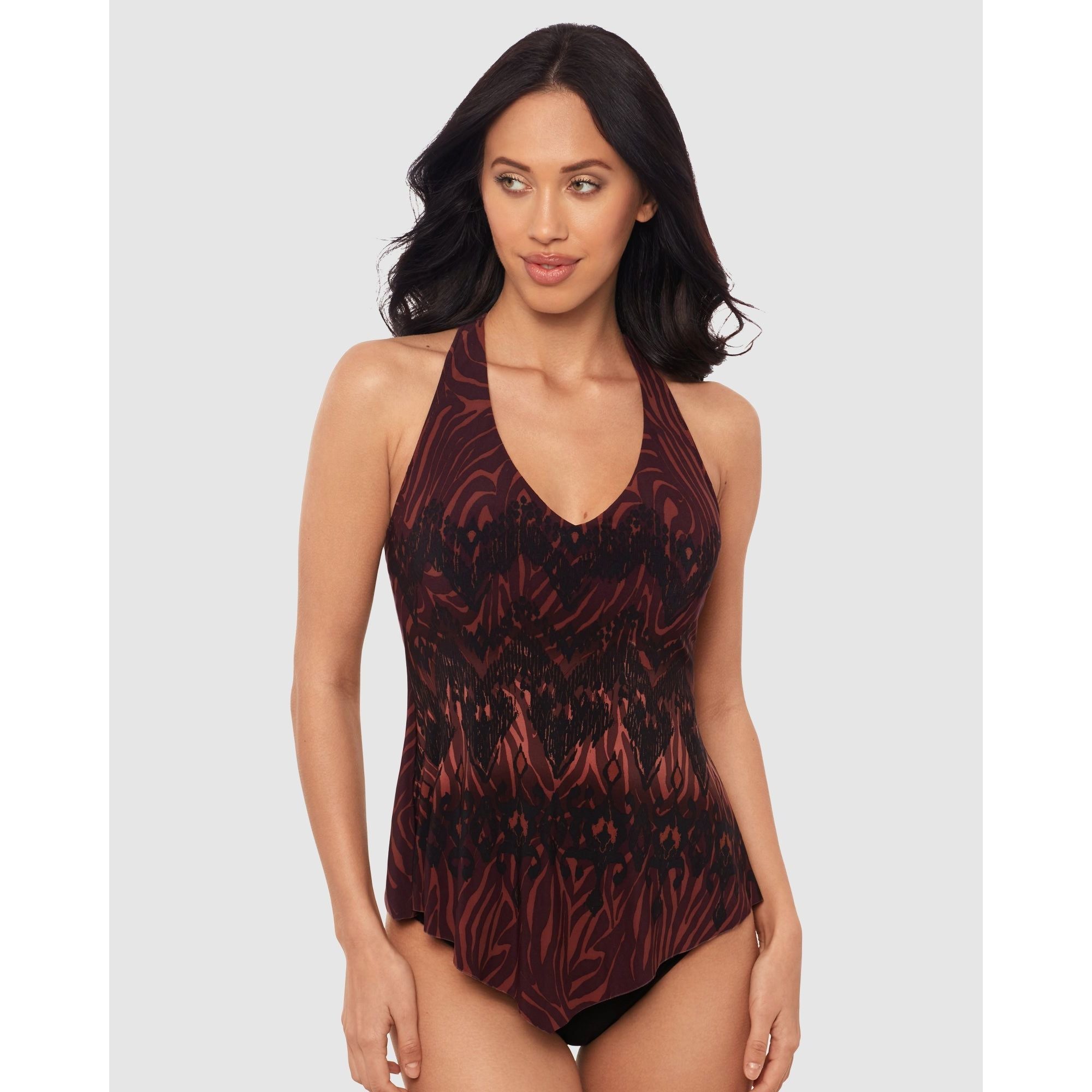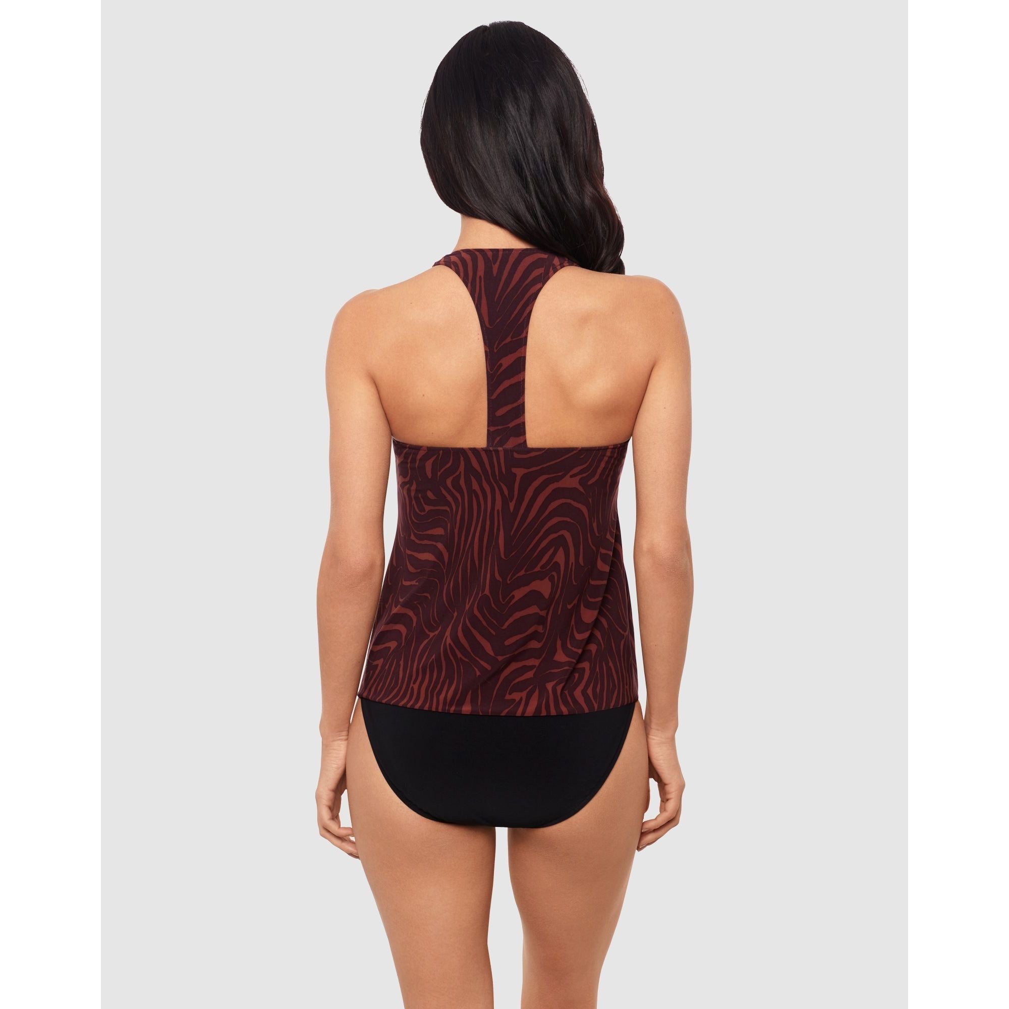 If you're looking for figure flattering swimwear that's both chic and comfortable, you'll love this underwired tankini top which has a loose fit and a handkerchief hem to visually elongate your figure. The V neck tankini top design also features a racerback cut to flaunt your shoulders.