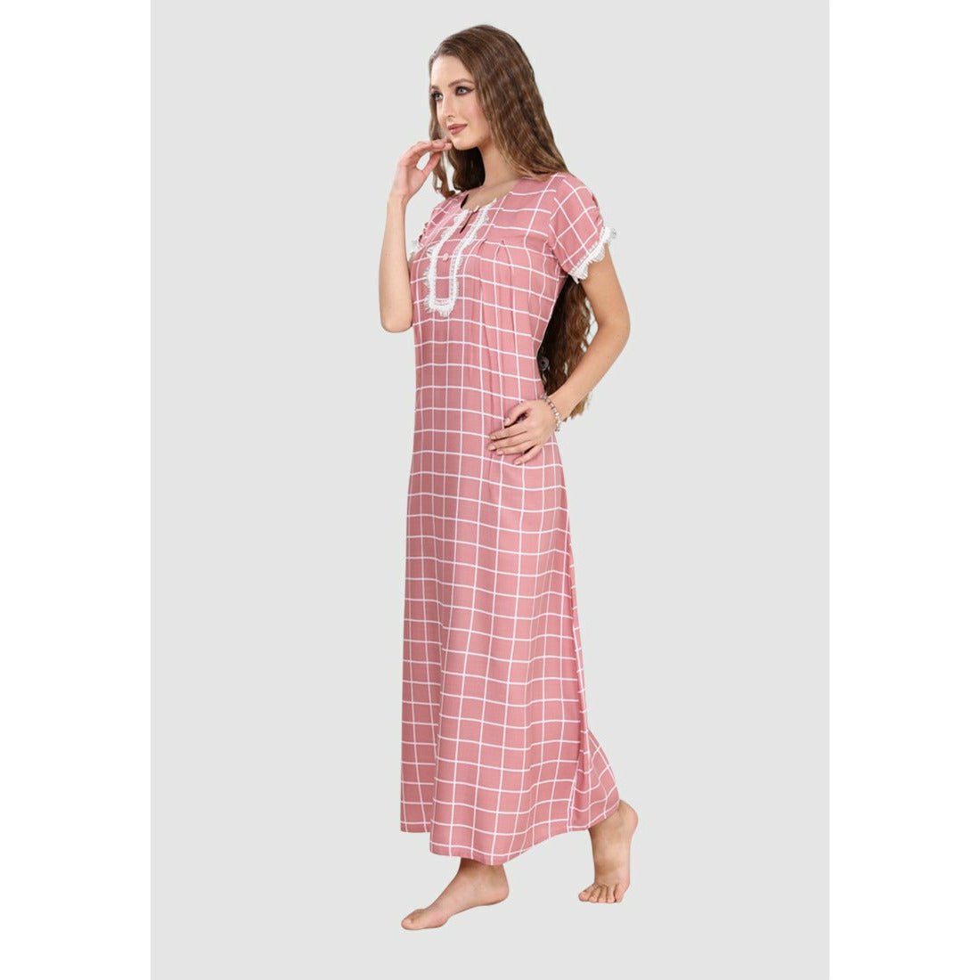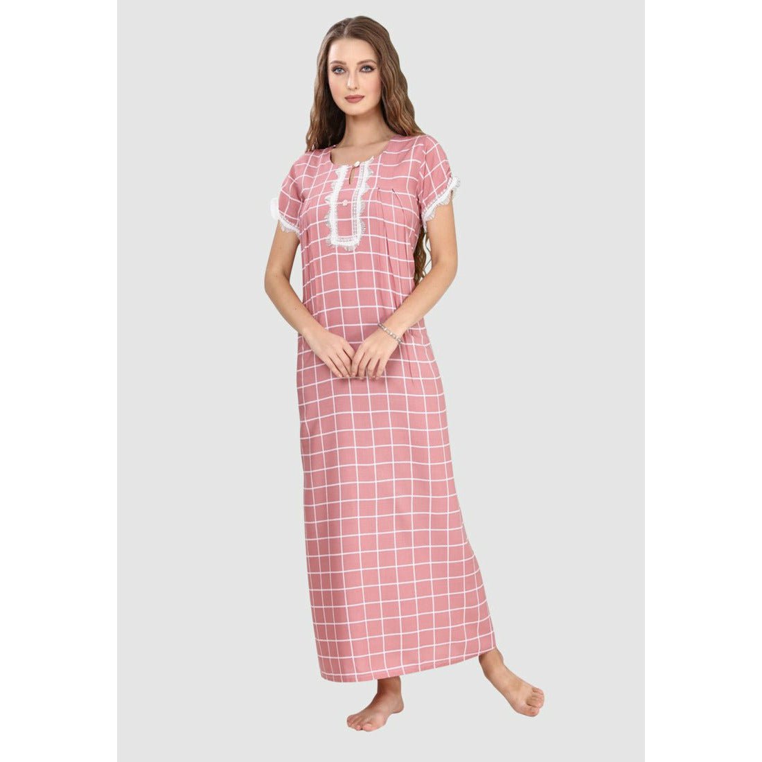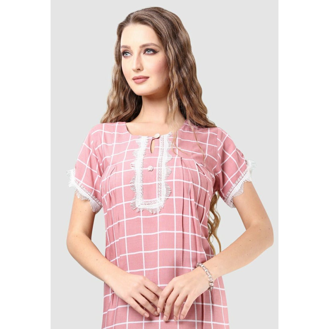Sleep or lounge in dreamy comfort in this long length, short sleeve nighty which is made from 100% natural fibre-based rayon. Soft and breathable, it's perfect no matter the weather. Pleat details create a flexible fit over the bust, while buttons and scalloped lace trims bring elegance and femininity to the long nightdress design.