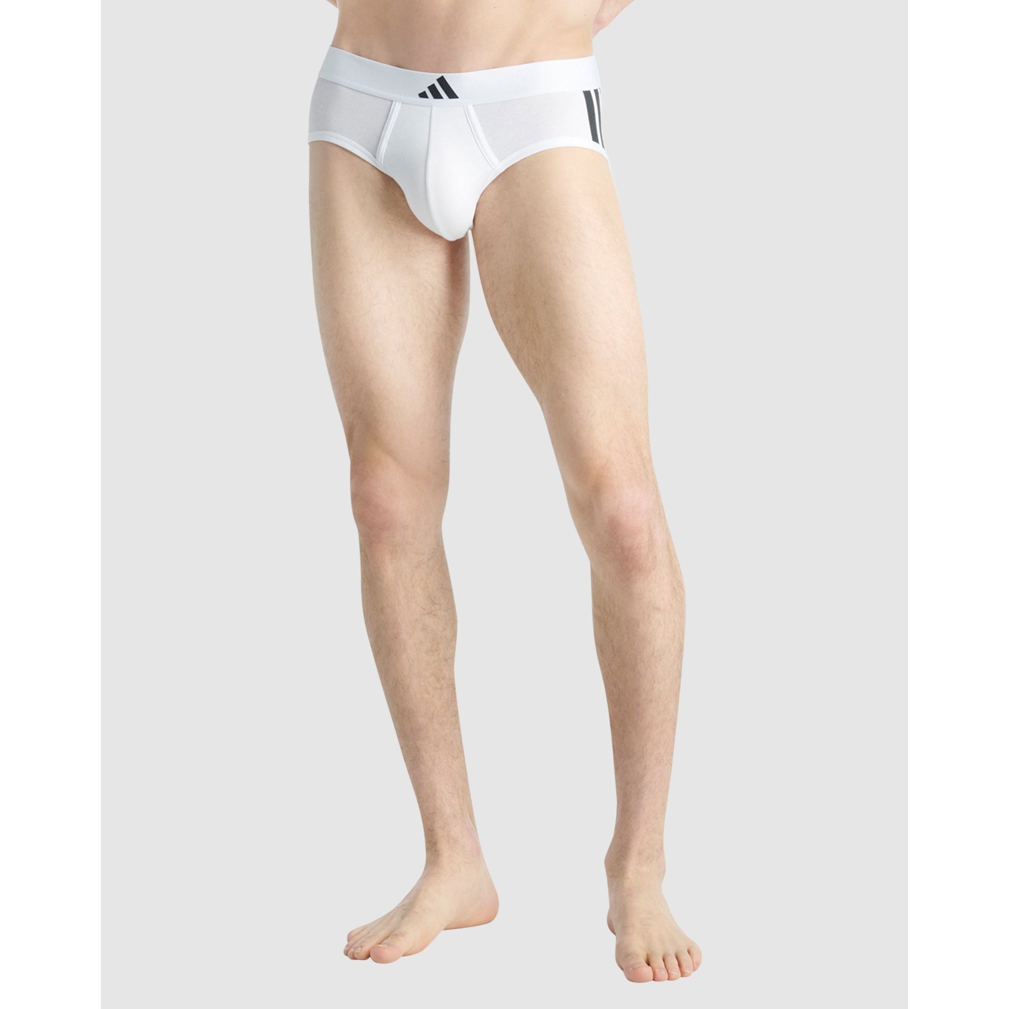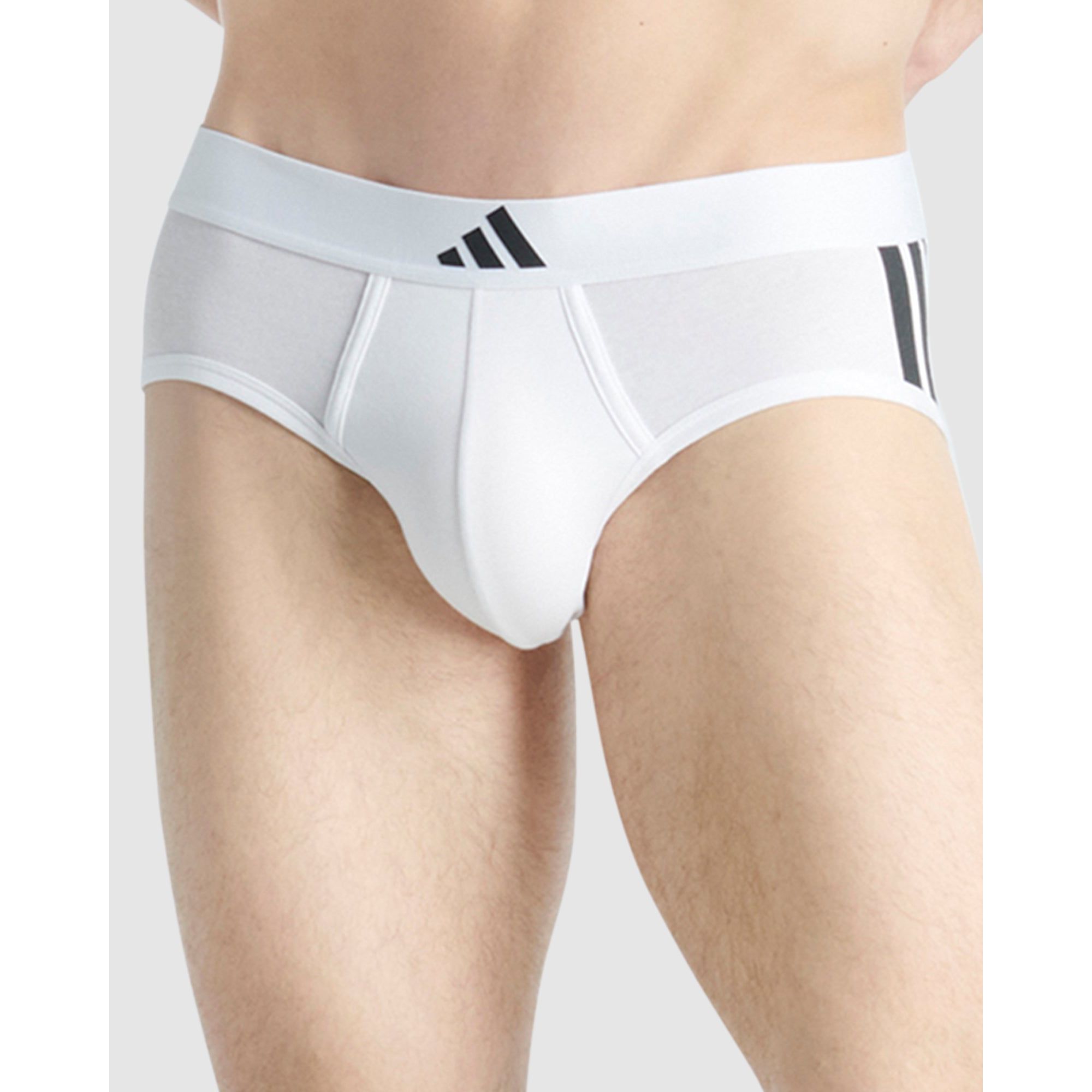 This Adidas Active Flex Cotton brief underwear is created from a soft, stretchy cotton that wicks moisture to keep you feeling fresh. It features contrasted signature 3 stripe design and logo waistband for effortless style. The no-chafe construction, 4-way stretch and contoured pouch provide the ultimate comfort all day long.