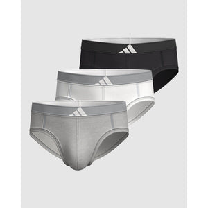 This 3 pack of Adidas Active Flex Cotton Body brief underwear is created from a soft, stretchy cotton that wicks moisture to keep you feeling fresh. It features a centered logo waistband for effortless style. The no-chafe construction, 4-way stretch and contoured pouch provide the ultimate comfort all day long.