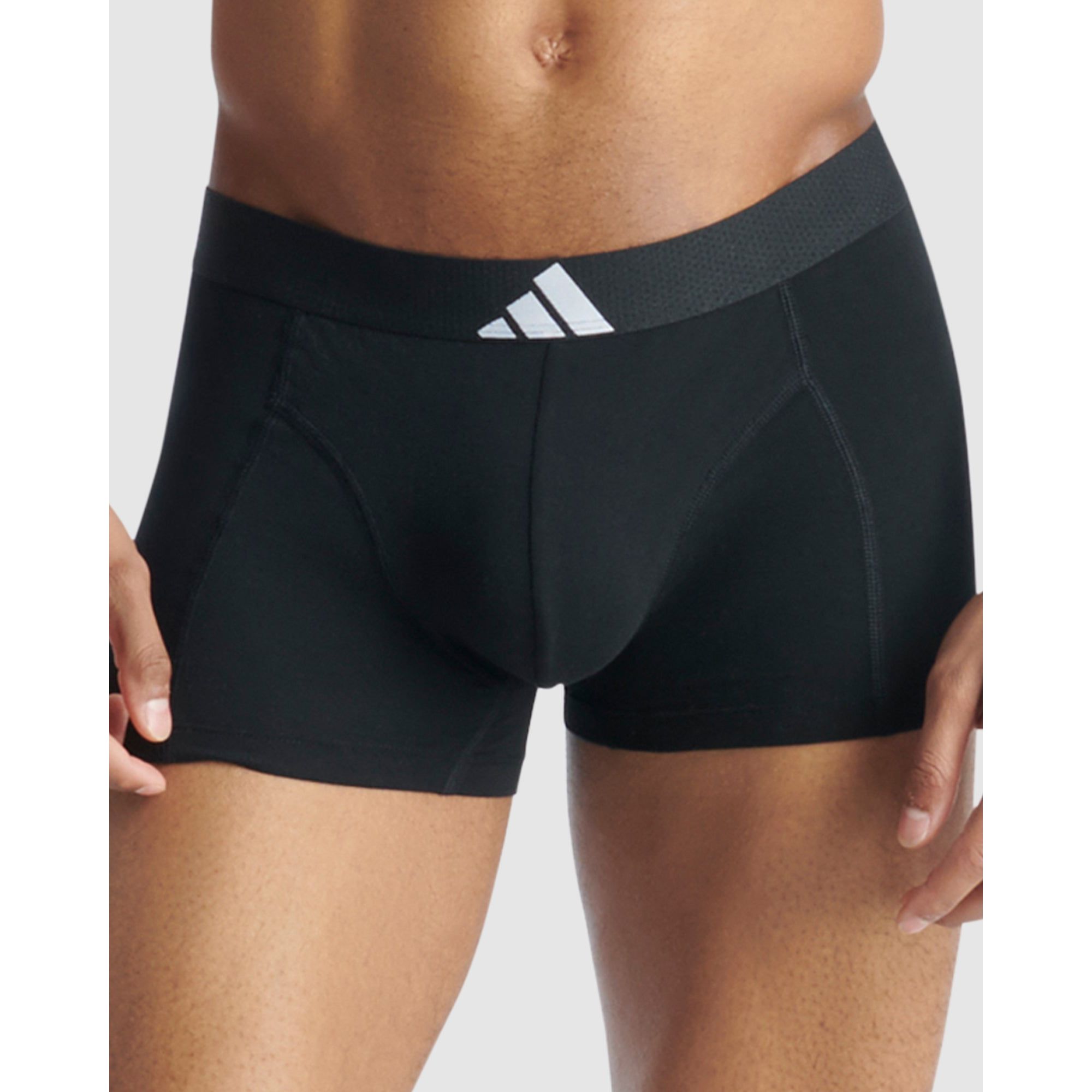 This 3 pack of Adidas Active Flex Cotton Body trunk underwear is created from a soft, stretchy cotton that wicks moisture to keep you feeling fresh. It features a centered logo waistband for effortless style. The no-chafe construction, 4-way stretch and contoured pouch provide the ultimate comfort all day long.
