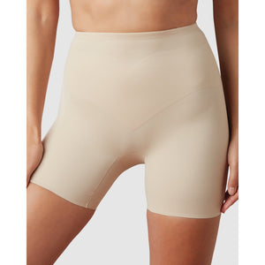 Enjoy firm control shaping without a waistband that digs in with this tummy and hip-shaping bike short, which has a self-adjusting mesh insert at the back to adapt to your body shape. A centre-back seam provides extra definition to your rear, while a stitch-free Wonderful Panel® provides targeted shaping for your tummy, sides, and upper back while maintaining an overall flexible and comfortable fit.