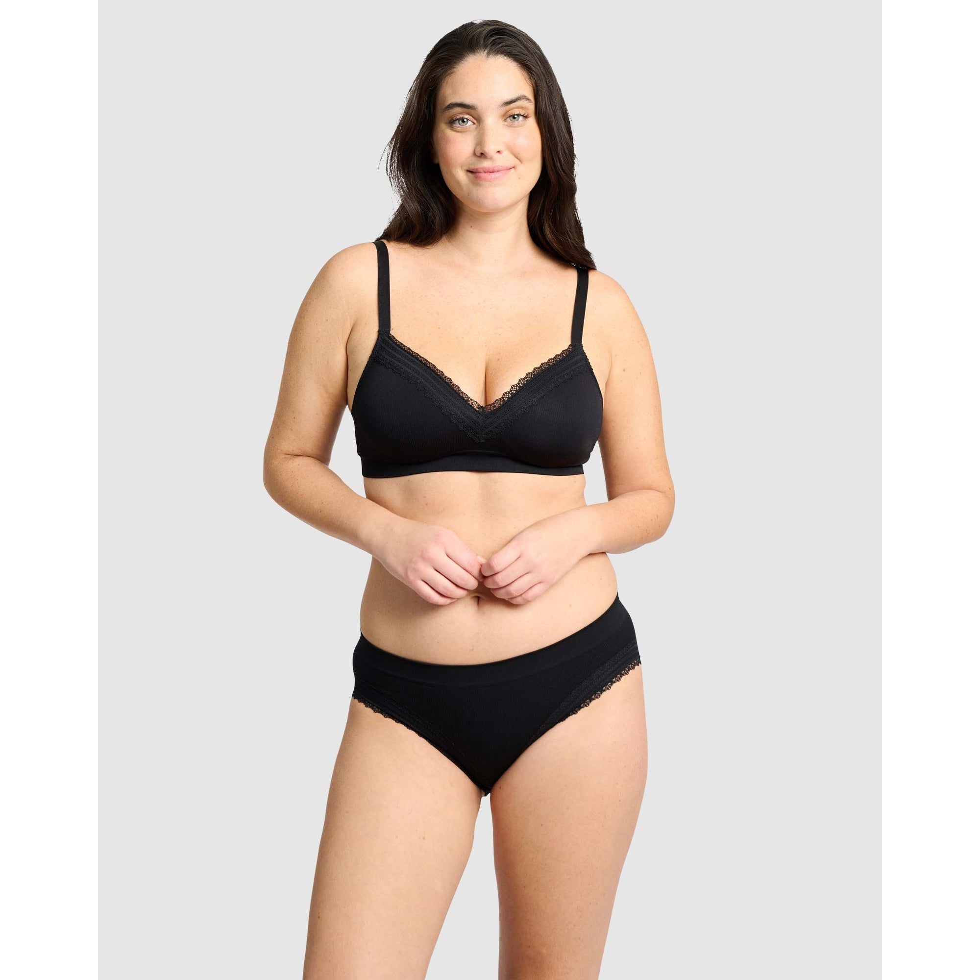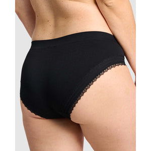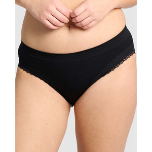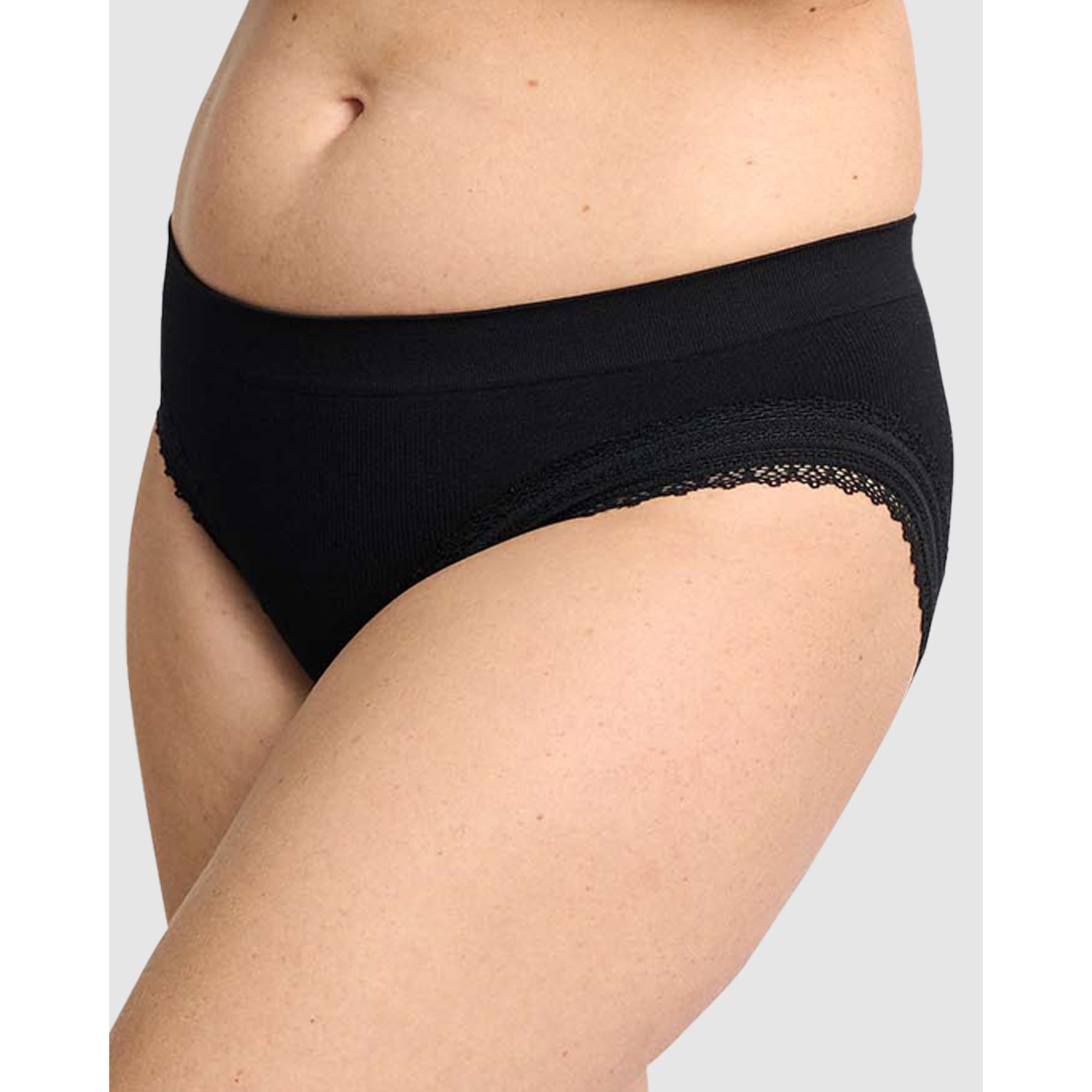 Enjoy all-day comfort with a side helping of cute style in this seamfree brief with a fancy lace trim around the leg line. Made from circular knit fabric with a finely ribbed texture, it's both soft and flexible for a 'second skin' fit that won't show through clothing.
