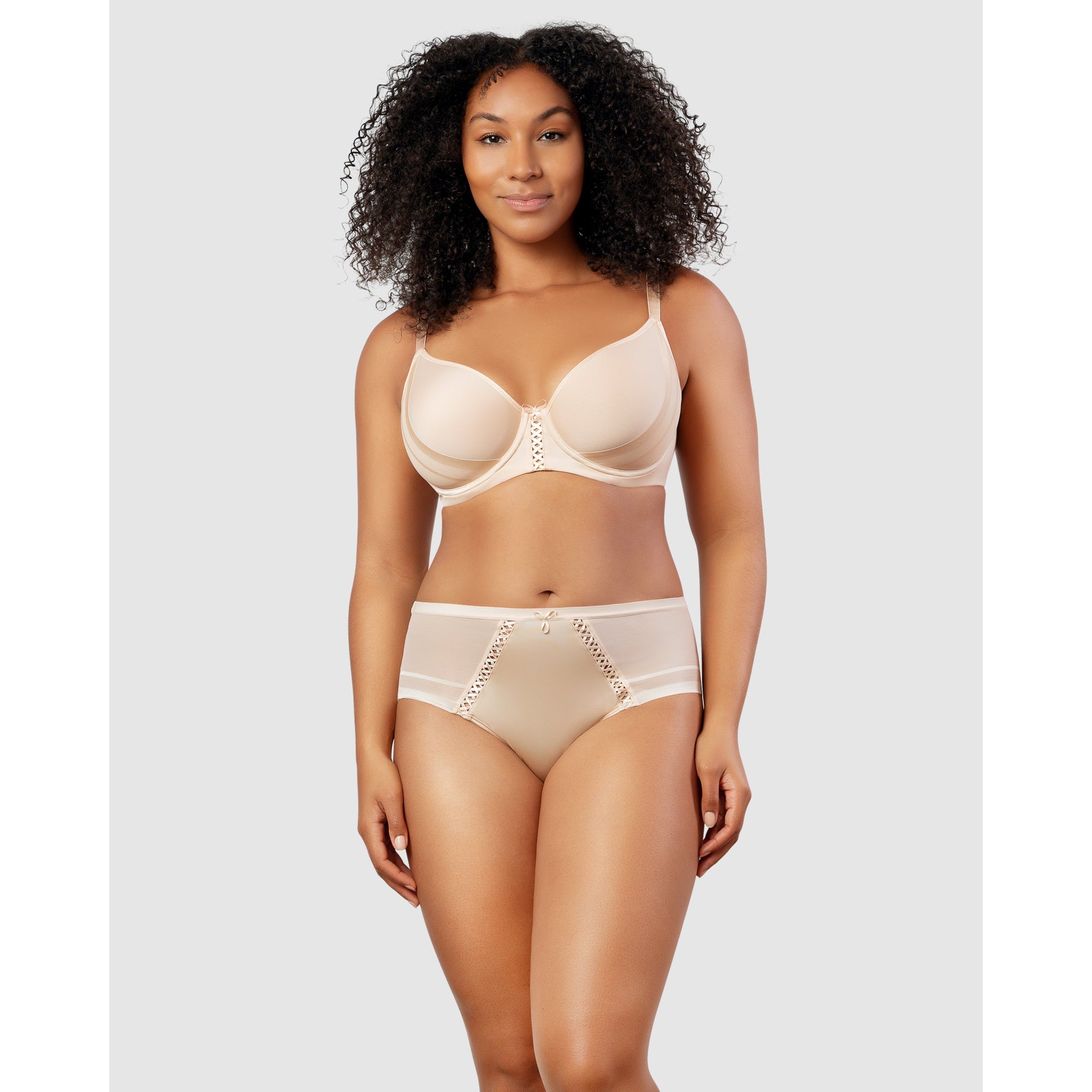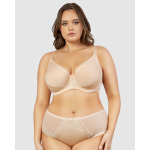 This supportive t-shirt bra uses innovative spacer cup technology to create smooth, moulded foam cups which feel incredibly lightweight and breathable. Side slings lift and shape the bust, and ribbon lacing up the centre-front creates a stylish look that you'll love to wear on a daily basis.