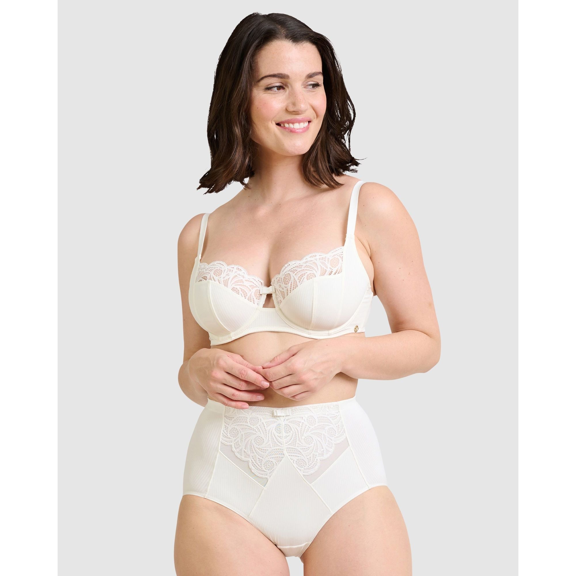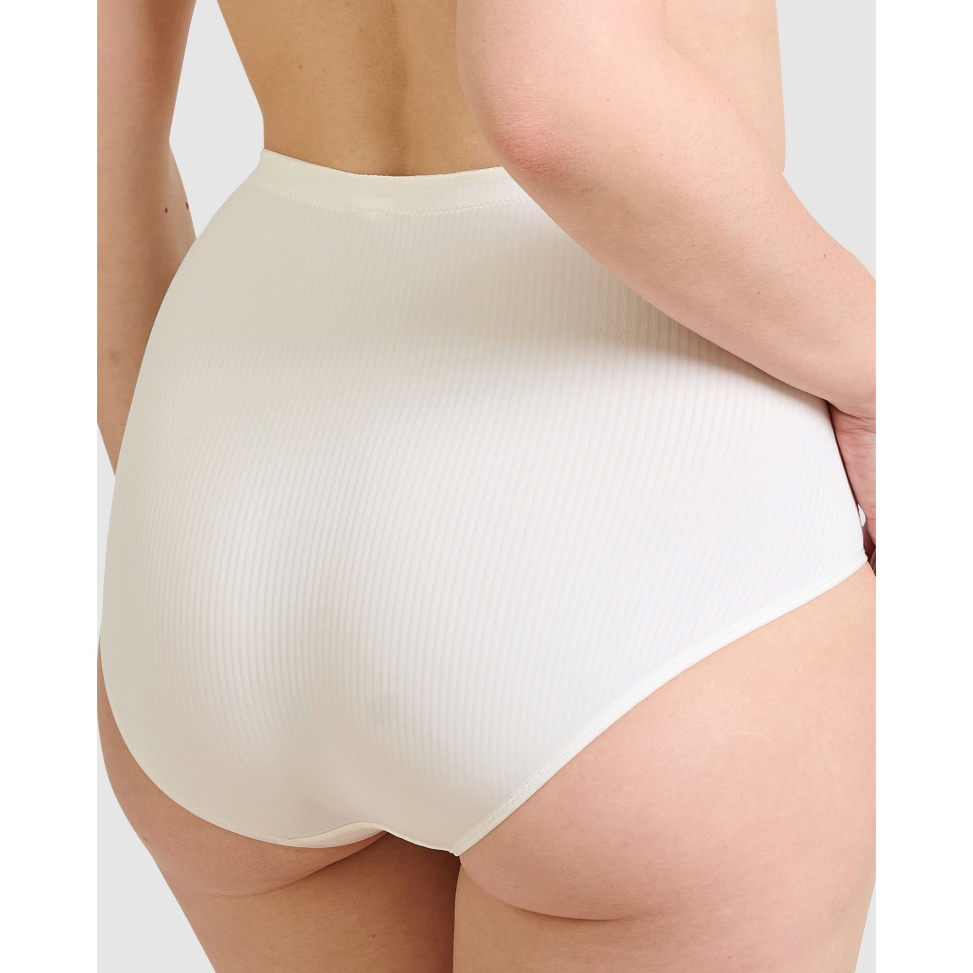 Enhance your figure without compromising on style in this high waist brief, which gently smooths and shapes for lightweight tummy control. Made from a textured, stripe-pattern microfibre that's super soft, it also features interlocking panels of ribbed and lace fabric at the front to visually amplify your curves.