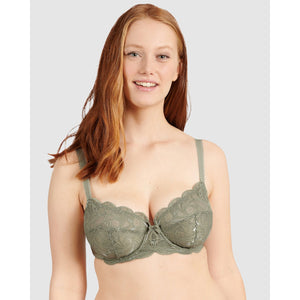 This underwired lace bra is an elegant French take on a lingerie classic. Designed with full busts in mind, this 3-part seamed, full cup bra shape delivers the perfect blend of support, lift and rounded shaping. The beautiful scroll-motif lace is also lined with tulle in the lower cup, for added support and a smoother feel against the skin.