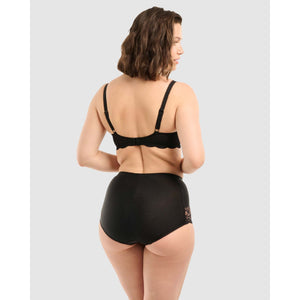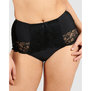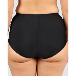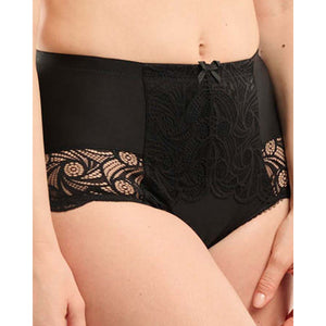 Enjoy subtle smoothing and a retro-meets-modern look in this high waist brief. Panels of swirling lace decorate the front of this incredibly soft microfiber brief, while the back features a curve-enhancing seam up the middle. A front lining gently flattens your tummy - wear this figure-hugging lace brief under skirts and dresses when you want to comfortably smooth away lumps and bumps without the restrictive feel of a firm control brief.