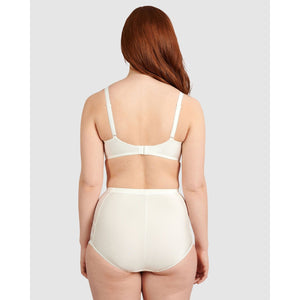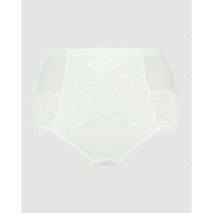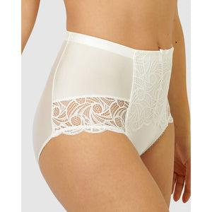 Enjoy subtle smoothing and a retro-meets-modern look in this high waist brief. Panels of swirling lace decorate the front of this incredibly soft microfiber brief, while the back features a curve-enhancing seam up the middle. A front lining gently flattens your tummy - wear this figure-hugging lace brief under skirts and dresses when you want to comfortably smooth away lumps and bumps without the restrictive feel of a firm control brief.
