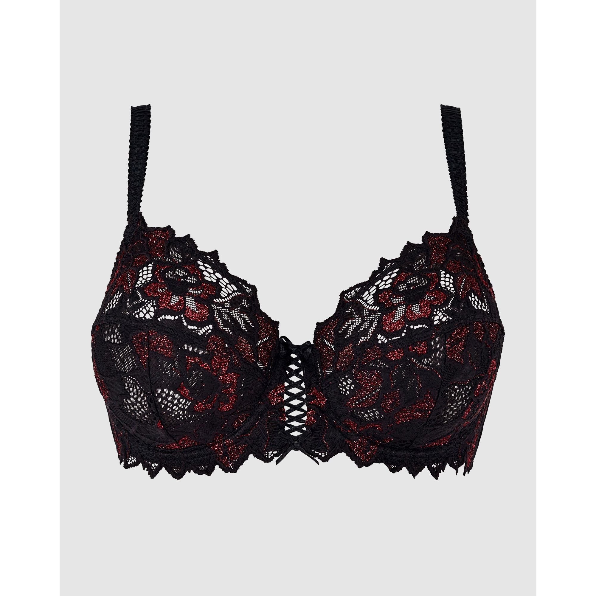 Fabric composition: Lace - 90% Polyamide, 8% Elastane, 2% Metallic Fibre. Fabric - 84% Polyamide, 16% Elastane. Back lining - 89% Polyamide, 11% Elastane. Cup lining- 100% Polyamide.
