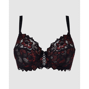 A glamorous new take on Sans Complexe's #1 selling design, this version of the Arum lace bra is woven with lurex thread for a seductive, iridescent shimmer. The 3 part cup design with a supportive tulle lining in the lower cup creates a lifted and rounded shape, while the signature Arum ribbonwork between the cups adds another stylish touch to this iconic design.