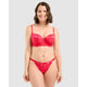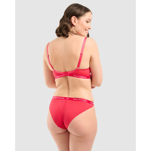 Get a flirty, on-trend look with this high cut brief that's trimmed with satin logo elastic. A skimpier alternative to a classic bikini brief, this tanga brief has narrow sides and a high leg cut, and combines a sheer lace front with a semi-transparent tulle rear that's seamless for zero VPL.