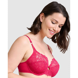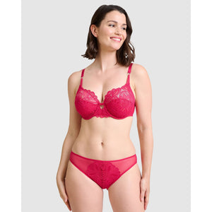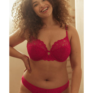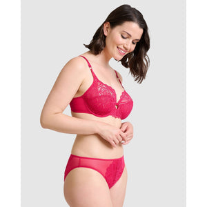 Look incredible from every angle in this sexy lace bra, featuring demi cups edged in sheer, scalloped lace, a keyhole cut out, and striking O-ring details at the back. It's a partially lined lace bra for great everyday support and comfort.