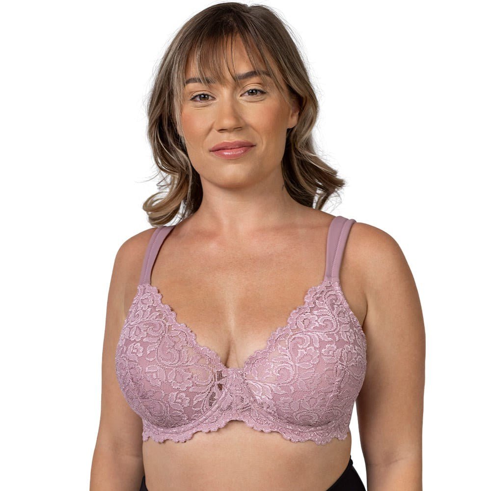 Ava is a lightly-padded bra with wide, padded straps and a scalloped lace overlay, for an everyday style that's as pretty as it is comfortable. Available in plus sizes, this underwired lace bra supports your bust in style, enhancing your natural shape while providing a smoothing effect at the sides and back. You'll also love the super soft feel of the lace!