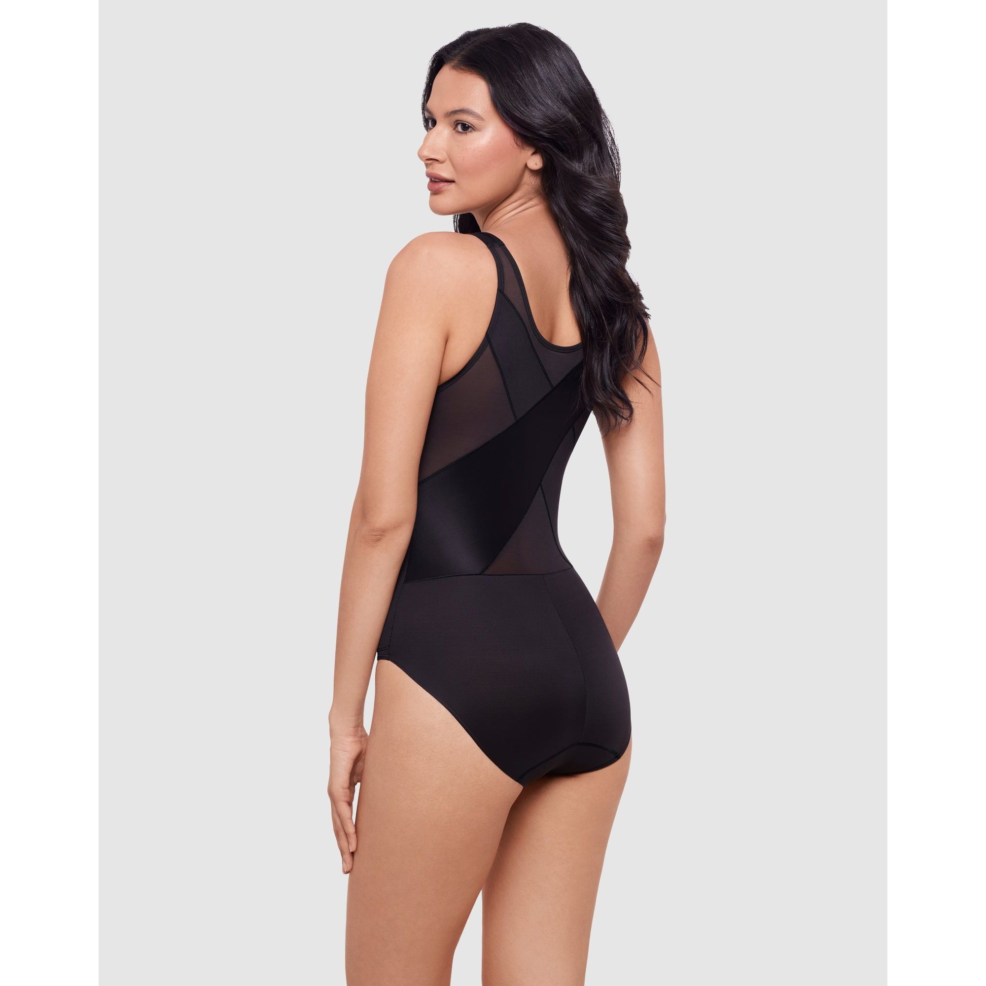 Fabric composition: Body - 75% Nylon, 25% Spandex. Mesh - 68% Nylon, 32% Spandex.