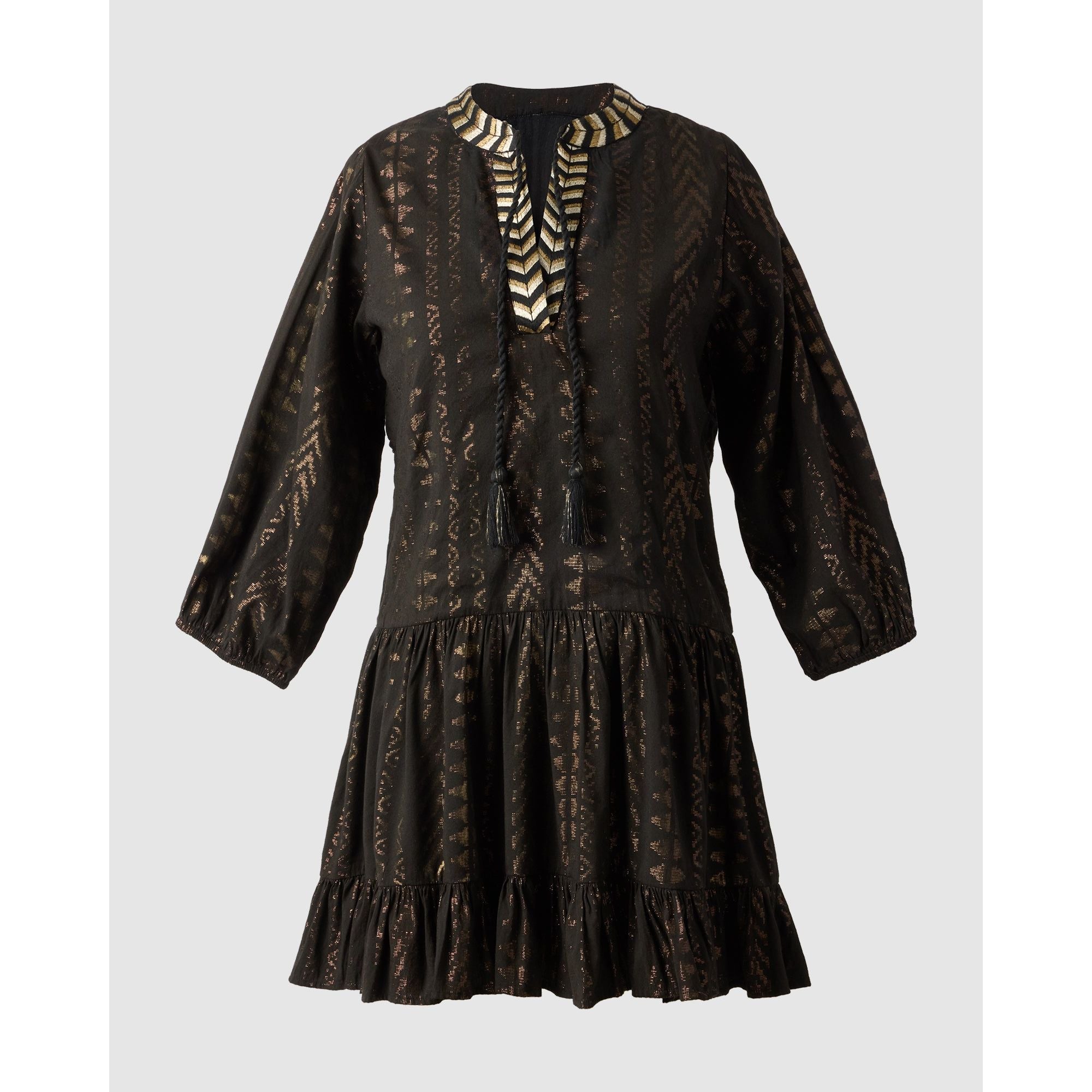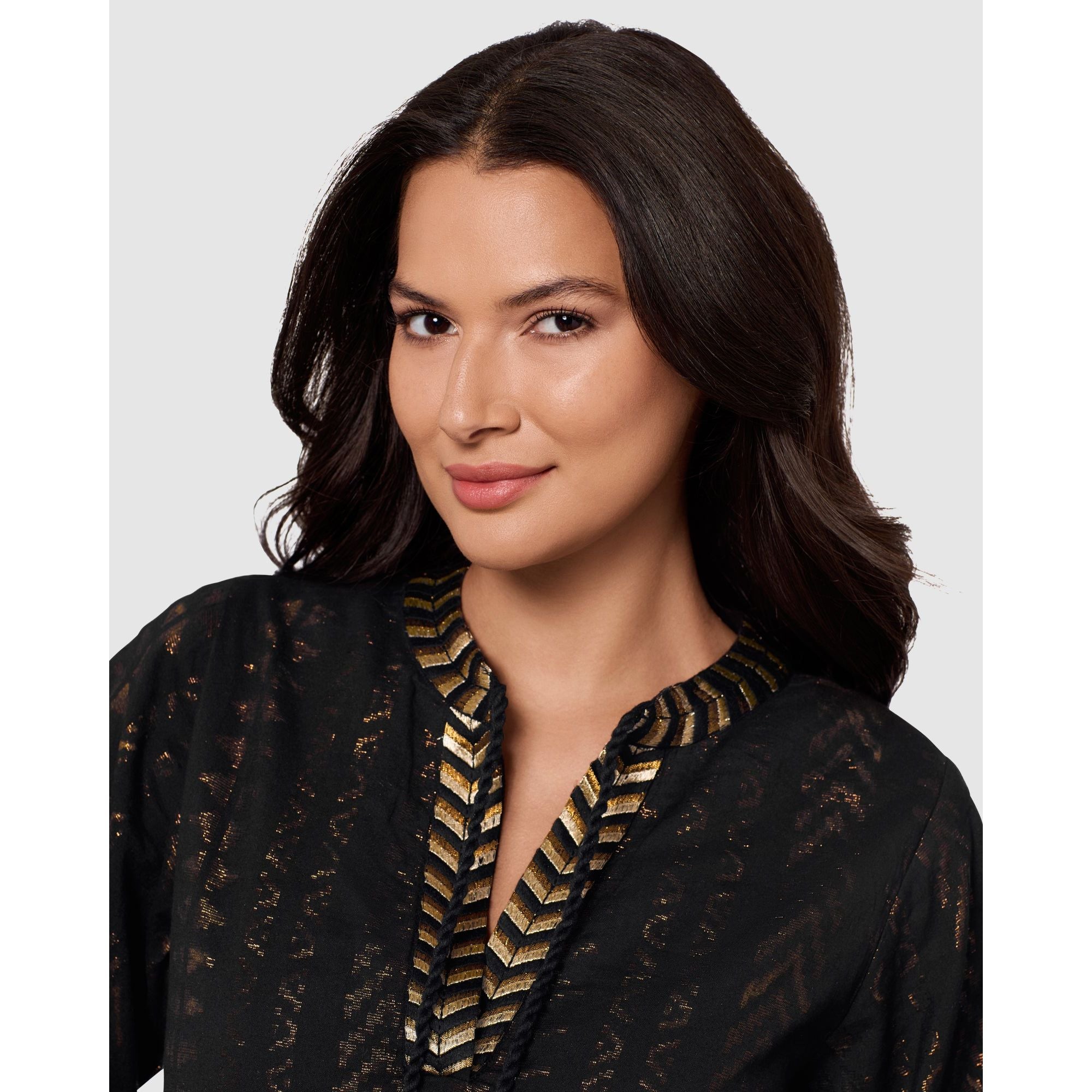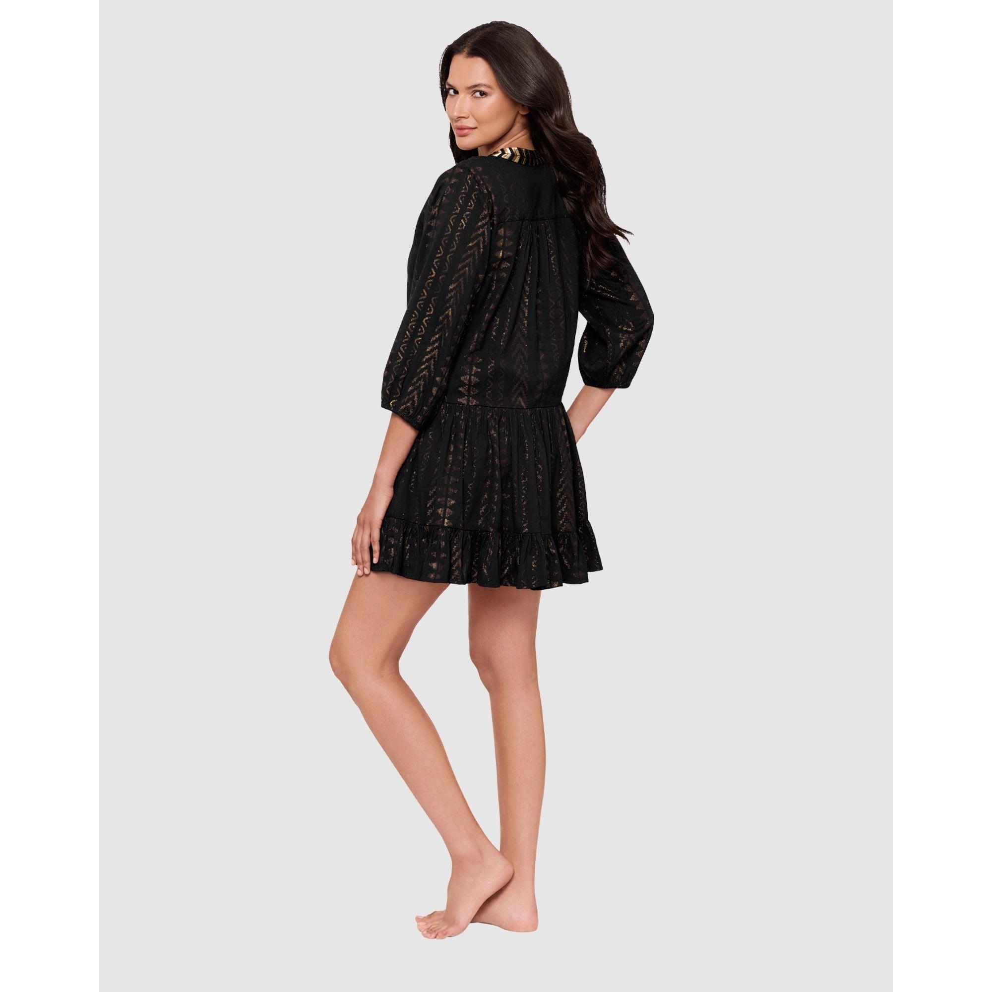Whether you're attending a glamorous pool party or just want to cover up from the sun, you'll love this luxury beach dress which is made from lightweight cotton voile with a jacquard shimmer, and embellished with two tassels at the embroidered neckline. A high, closable neckline and 3/4 sleeves ensure maximum skin protection without sacrificing on spectacular style.