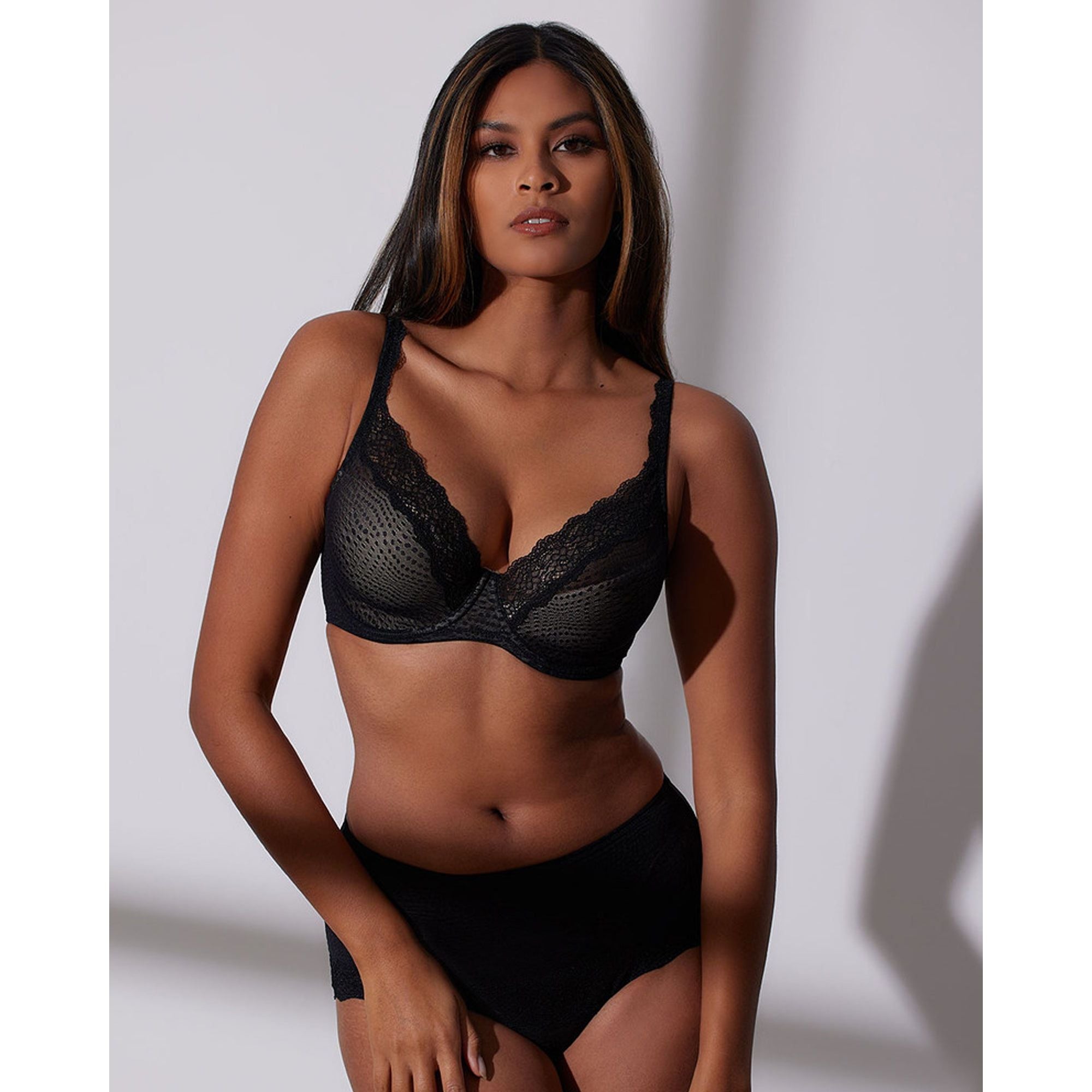 Enjoy style, comfort and fantastic shaping in this wired demi cup bra, which is topped with animal print-inspired lace plus a floral lace trim framing the neckline. Stretchy foam pads deliver smooth shaping with no added bulk, and a sliding J-hook at the back allows you to convert the bra to racerback at any height of your choosing.