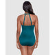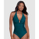 Giving you a modern and minimalist twist on poolside luxury, this tummy control swimsuit features a faux halter neck design which has two narrow straps connecting it at the back, to take the weight off of your neck. Alongside firm-fitting curve control fabric, the design flatters your figure through careful draping and gathering, culminating in a chic horseshoe detail which frames the centre of the deep plunge neckline.