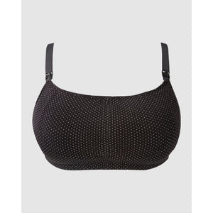 Your all-in-one maternity and nursing bra. This soft, comfy, wirefree nursing bra comes in flexi-fit sizing that adapts to your growing or fluctuating cup size, and has an innovative drawstring neckline that converts it from a crop top nursing bra (perfect for sleeping!) into a plunge nursing bra for V shaped necklines. Simply pull the cord to ruche the fabric, and tie with a bow to secure it in place.