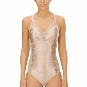 This Naturana bodysuit features moulded, non underwired cups and provides a smooth silhouette. It has a double tummy control panel and back control panel for shaping and support. There is a small embellishment detail at the front centre. It has wide comfortable straps and a cotton gusset lining.