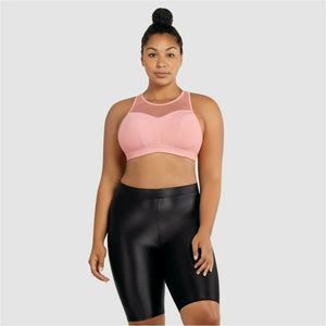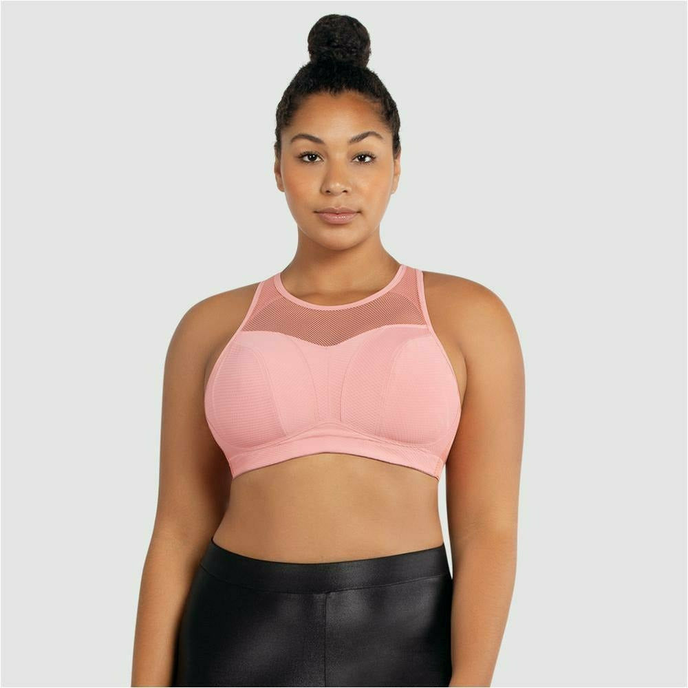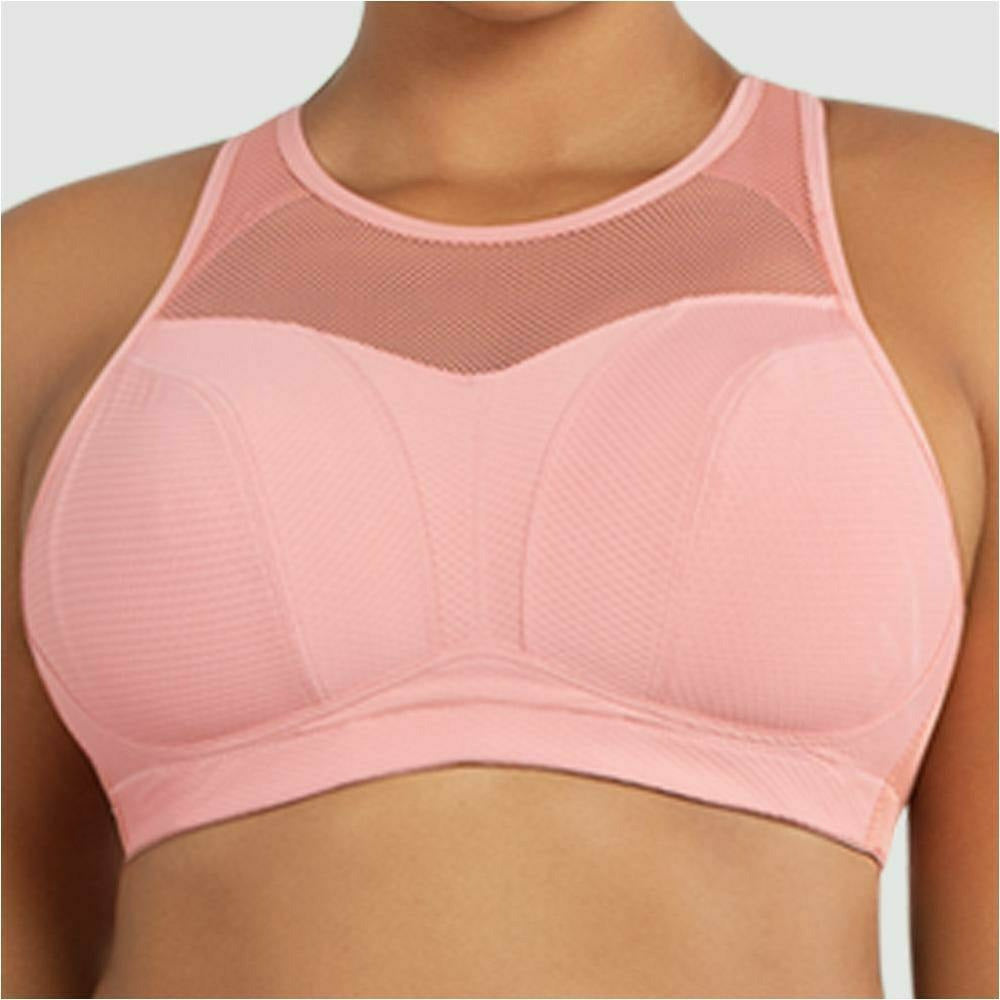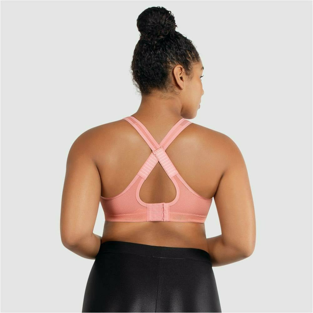 The lined wire-free cups, supportive band, and eye-catching mesh details of this wireless sports bra prove that support can be sexy. Converts easily to a criss-cross style for added versatility.