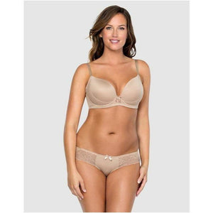 Parfait's Casey Contour Plunge Bra, which has smooth, foam-lined cups to be invisible under clothing. Not just there for decoration, the pretty lace side slings also enhance the support for fuller busts.
