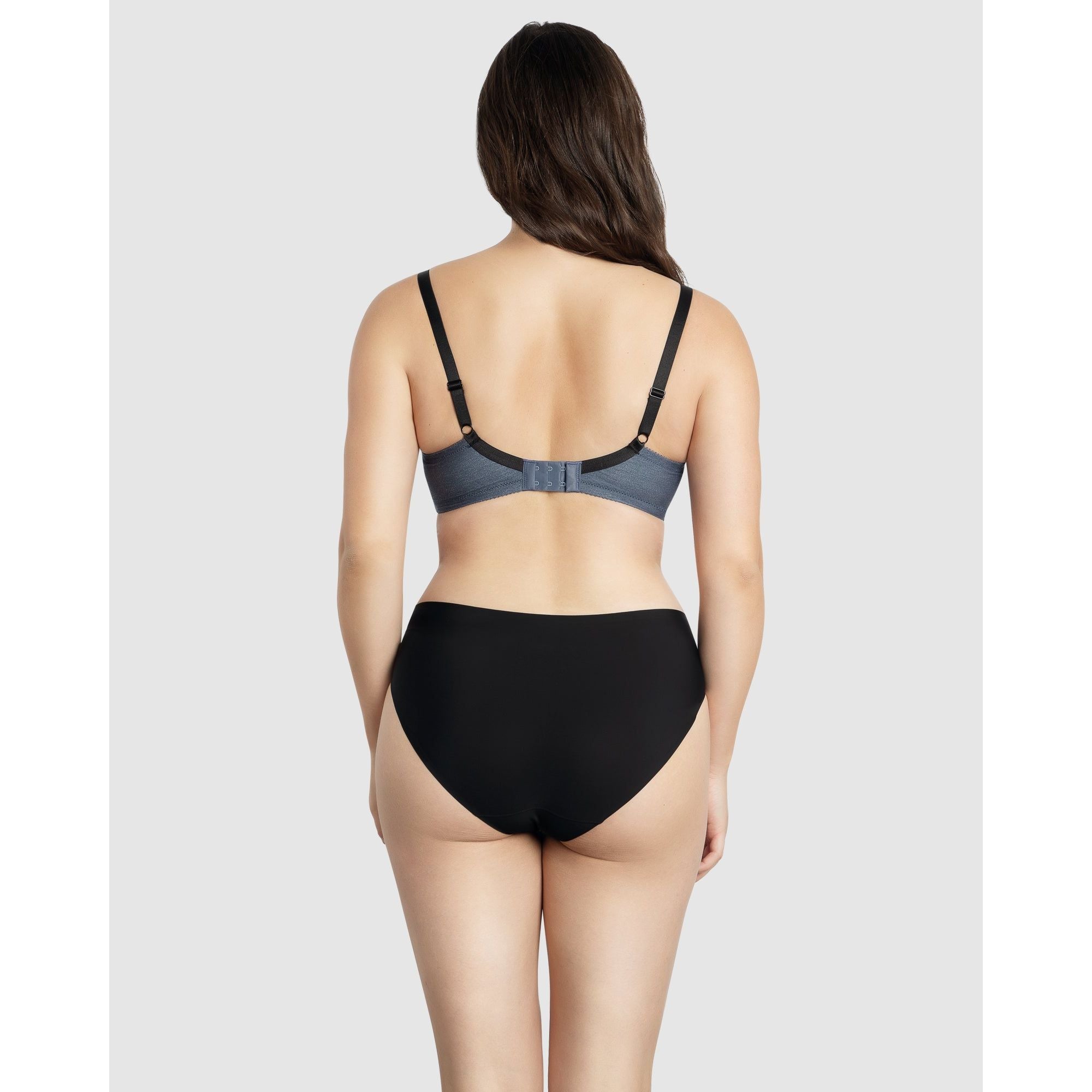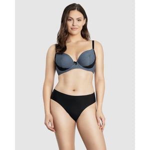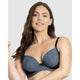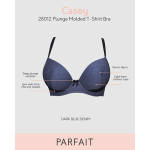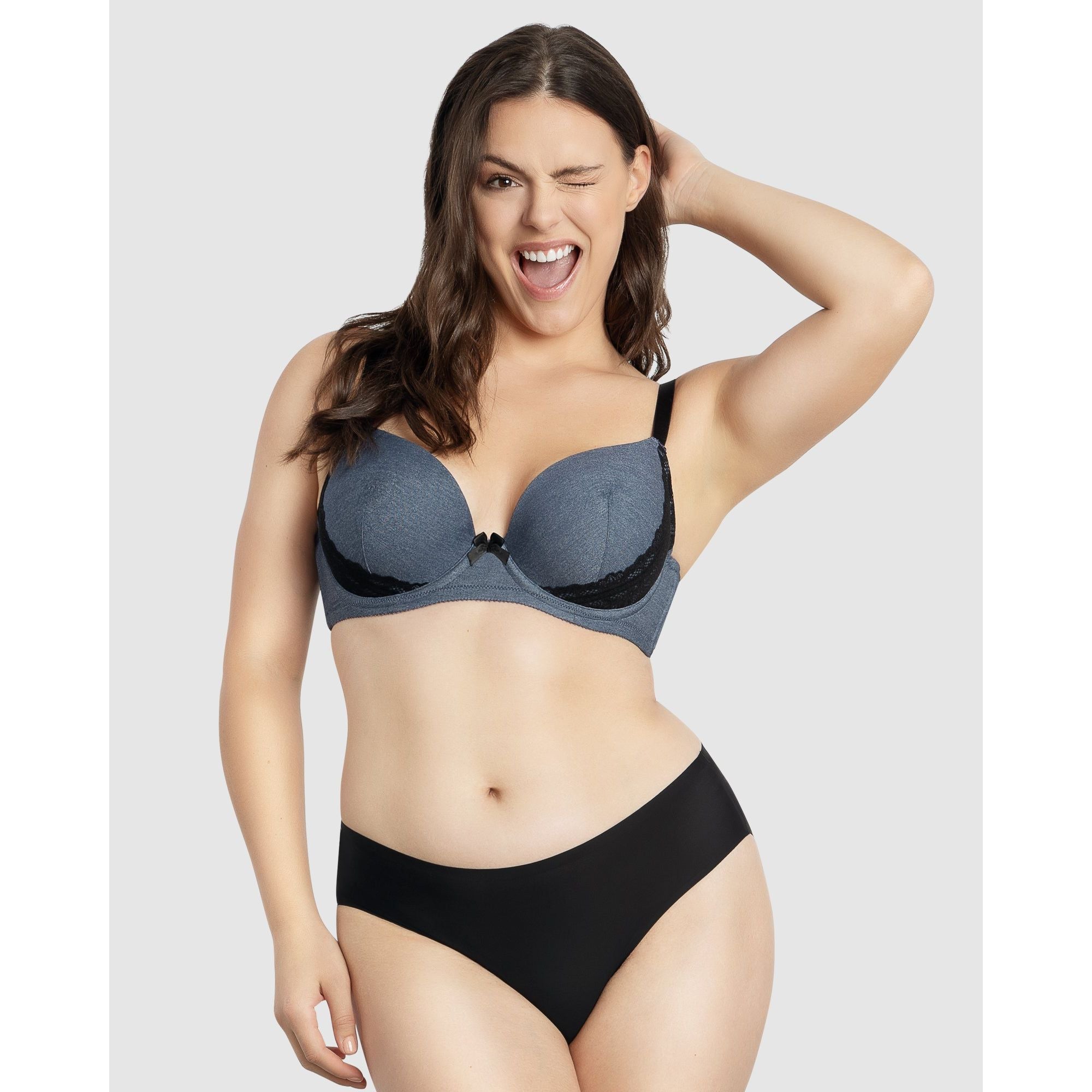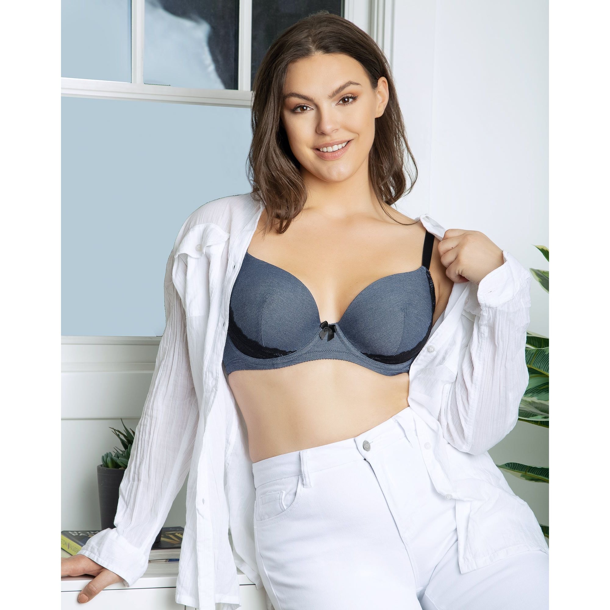 Whether you wear it as lingerie or style it as outerwear, this denim bra with lace trims always makes a fashion statement! It's a smooth, contour cup t-shirt bra with a plunge neckline, and the lace side slings are not just decorative but also boost lift and help to shape the bust.