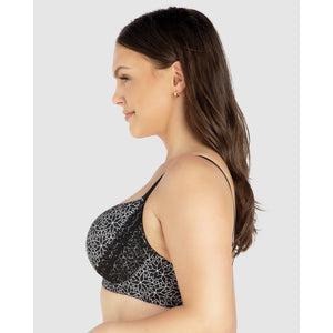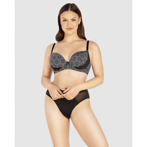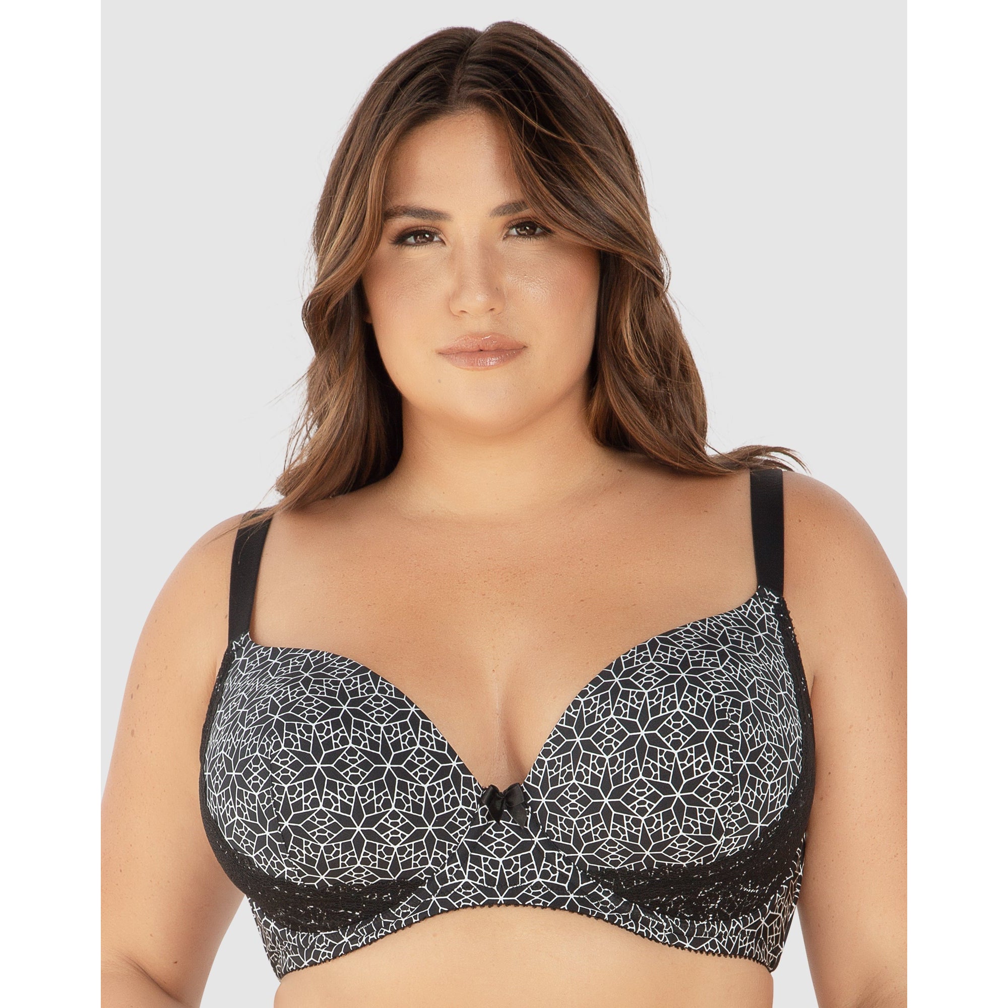 Achieve fabulous lift and shaping in this contour cup t-shirt bra which has a plunge neckline and smooth, foam-lined cups to be invisible under clothing. Not just there for decoration, the pretty lace side slings also enhance the support for fuller busts.