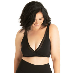 Luxuriate in the wirefree comfort of this mesh-trimmed crossover bralette, which is equally great as an everyday bra, lounge bra, sleep bra, or even nursing bra since the cups can be easily pulled aside for breastfeeding. Designed as a pull on bra with no fastening or other hardware, it also has a tall back which will create a smooth look under your clothing.