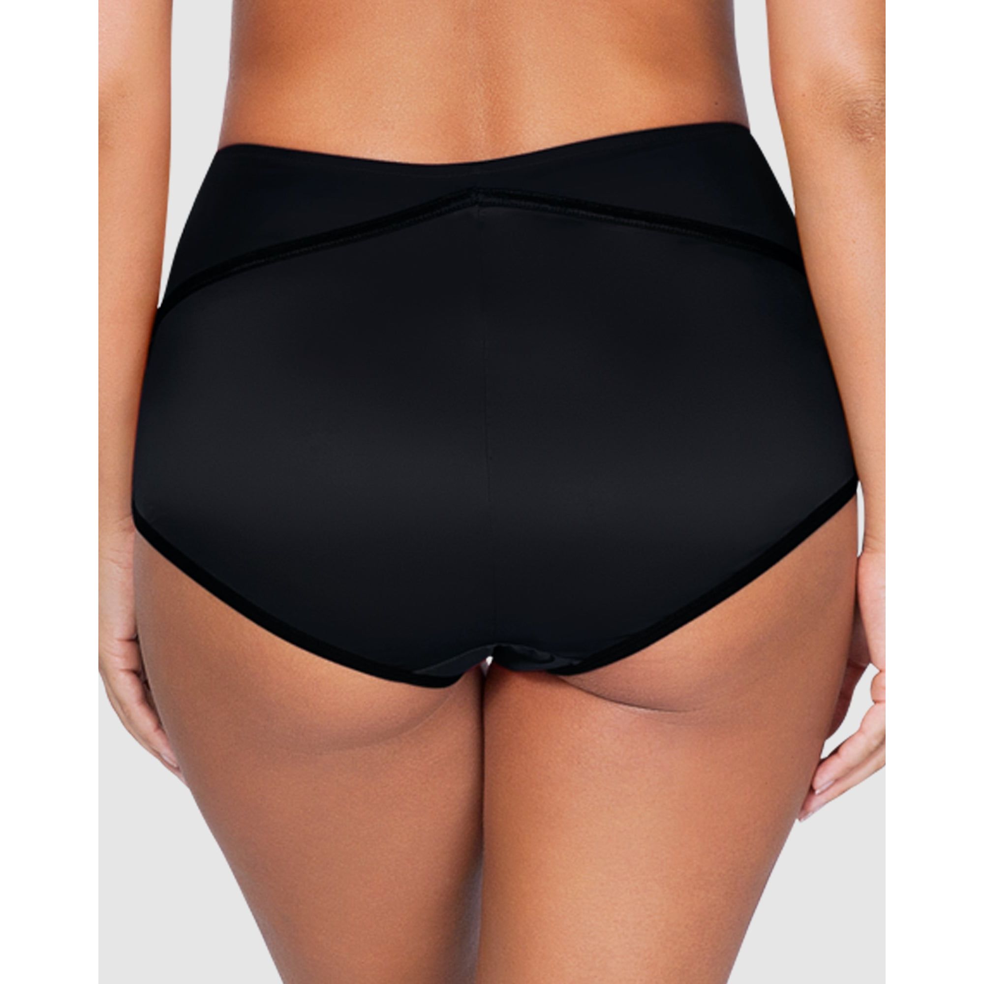 This high-waist panty features a retro look with contrast tape detailing on the front sides, back yoke and leg openings. Made of polyester/elastane.