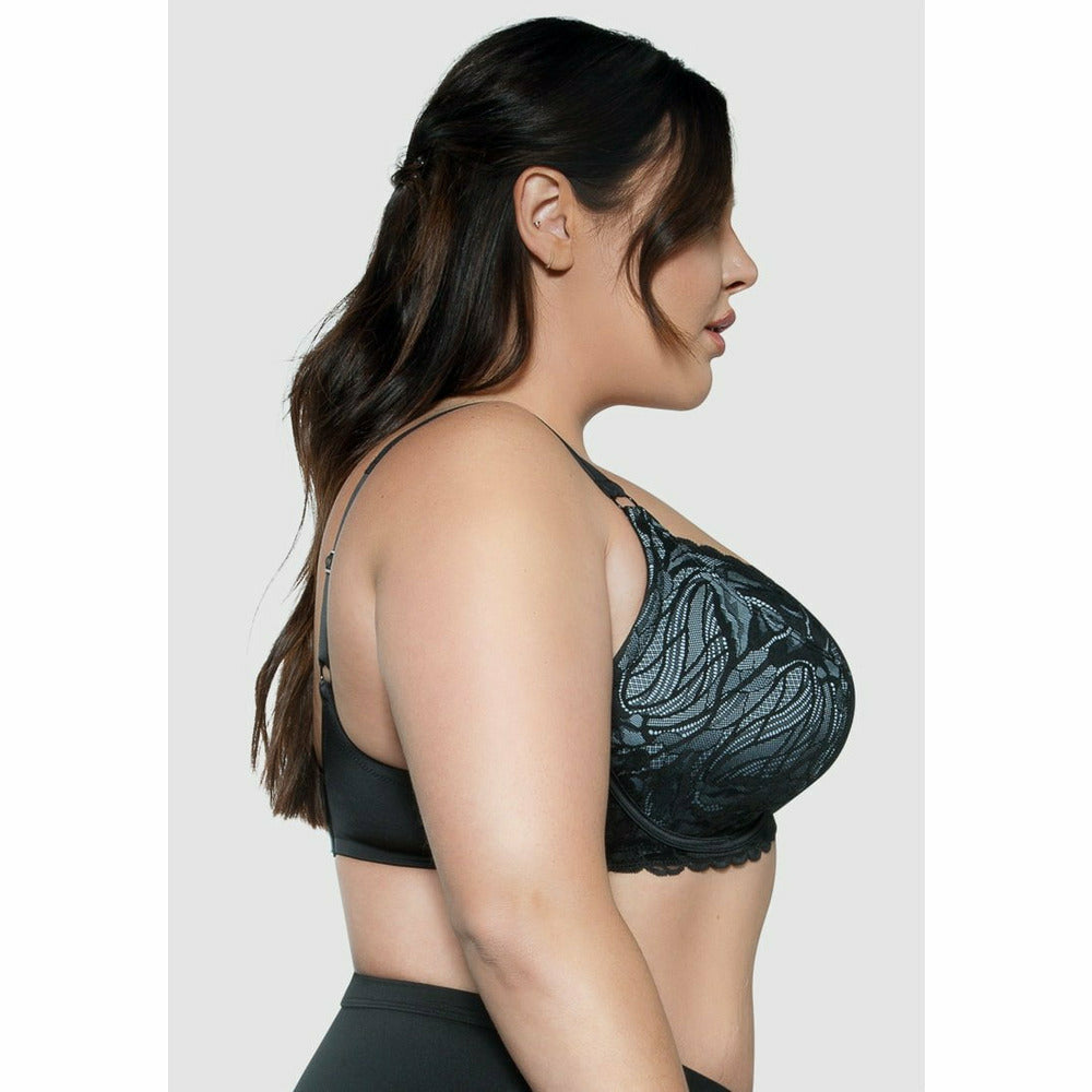 A new addition to Parfait's iconic Charlotte range, this underwired lace bra has been designed especially for full busts with a supportive 3-part cup construction with outer sling, wide and padded comfort straps, and a support-enhancing U shape back design. A chic tuxedo bow, keyhole cut-out, and satin lining complete this lace bra design, for an elegant design you can wear on a daily basis.