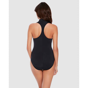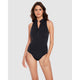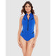 Look incredible while you surf, swim, or beat your friends at volleyball in this sporty-styled tummy control swimsuit. It has a high neckline which can be unzipped into a V neck or sexy plunge, plus mini zipper pockets for your keys and other essentials. Best of all though, it sculpts your silhouette to perfection through a combination of hidden underwired cups and firm-control shaping fabric.