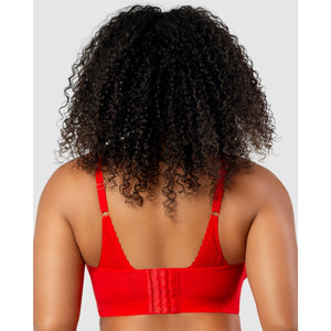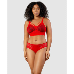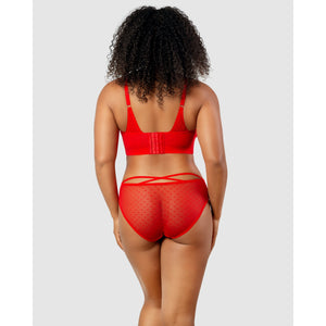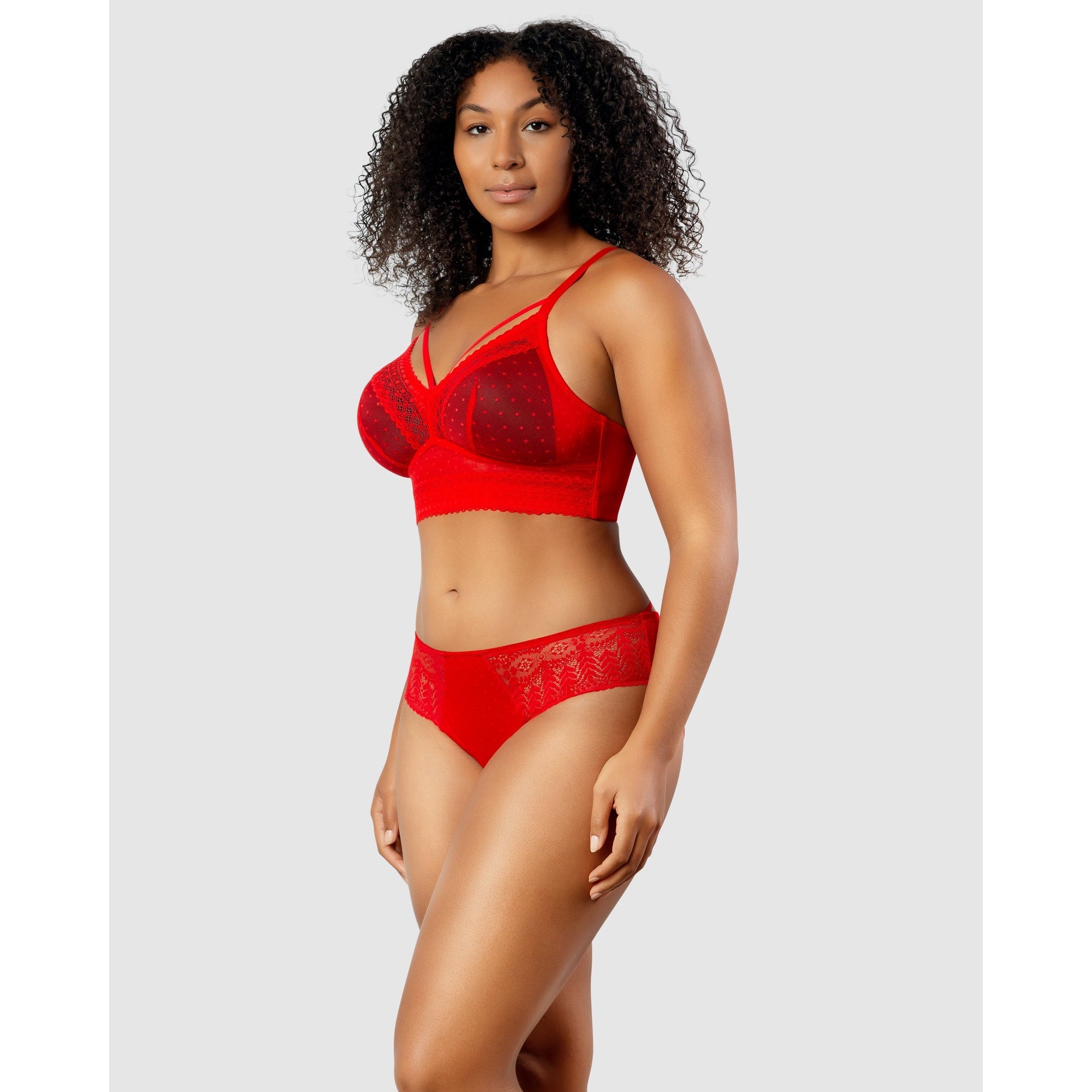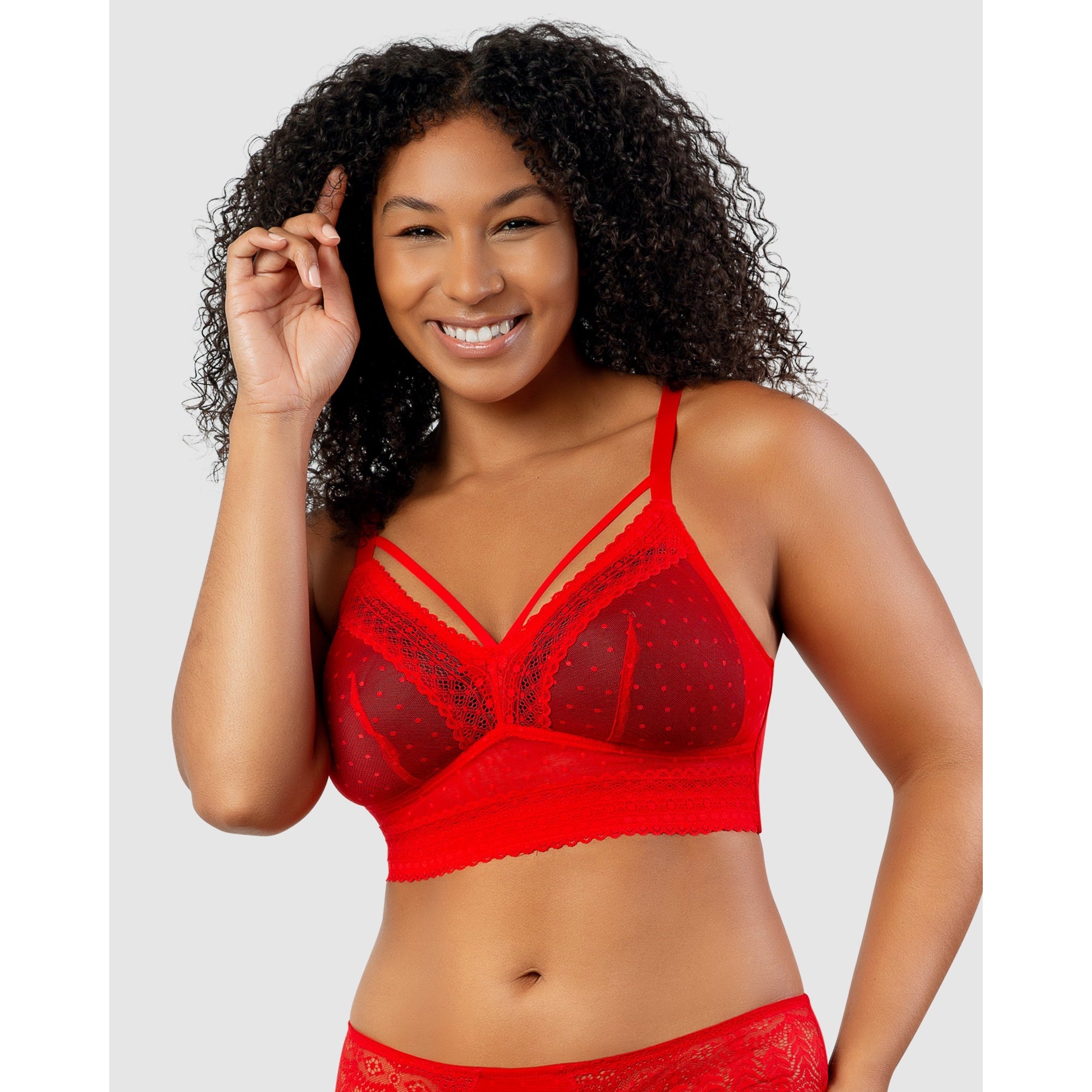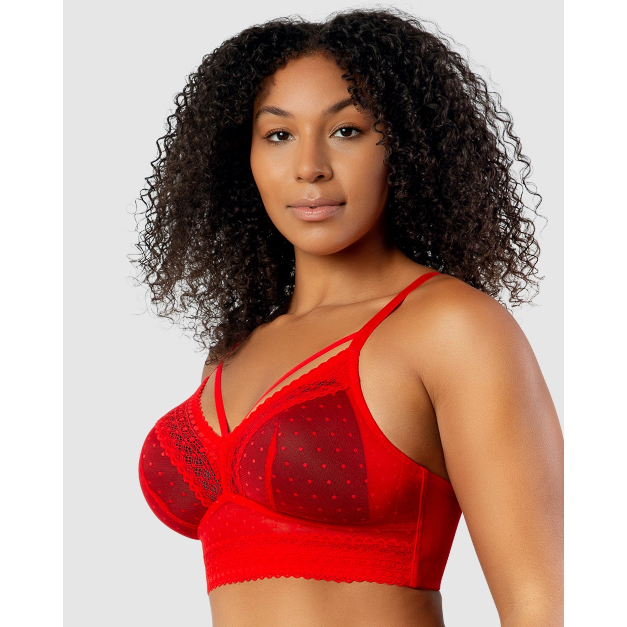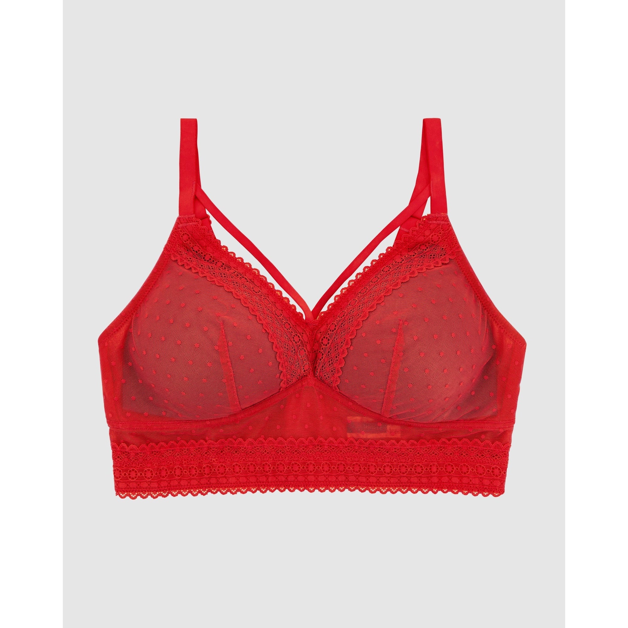 This unique lace bralette with removable padding offers you a choice of three looks to suit your mood: go subtle with tone-on-tone padding, flip the padding for a contrast colour visible through the dotted mesh, or remove it altogether for sexy sheer cups. It's a longline bralette for enhanced support for smaller and full busts alike, and is decorated with lace trims and stylish strapping across the neckline.