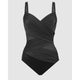 This underwired swimsuit will sculpt a beautiful silhouette, thanks to powerful shaping fabric that's complemented by curve-enhancing draping. Made from a single layer of Miratex fabric, it's a control swimsuit which smooths and slims all over, while the ruched crossover design and triangle mesh inserts create the illusion of a smaller waistline. With hidden underwire to support and lift your bust.