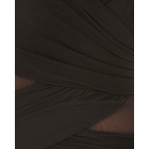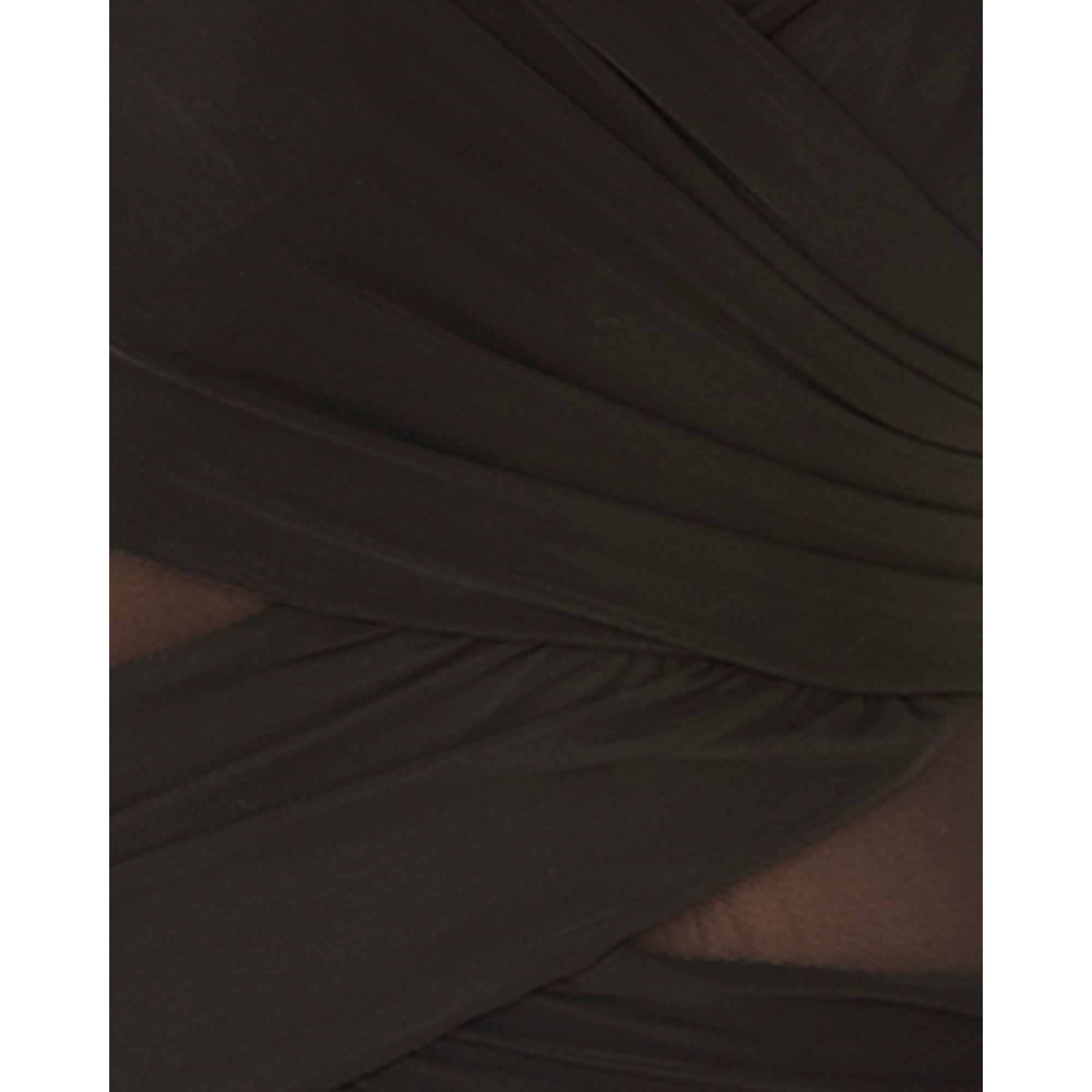 Fabric composition: Body - 69% Nylon, 31% Spandex. Drape - 82% Nylon, 18% Lycra® Spandex.